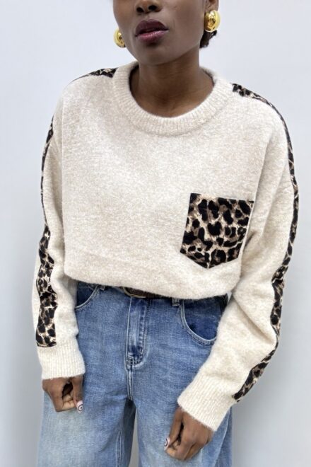 MAGLIA LEOPARD BEIGE MELANGE