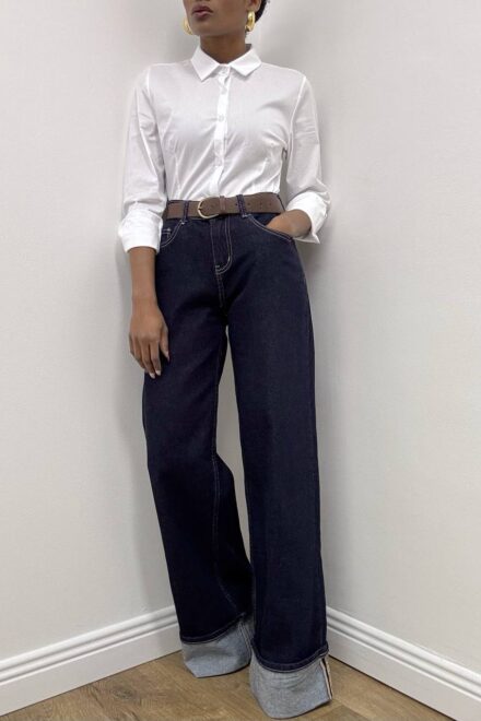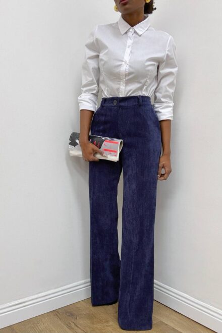 PANTALONE GEA IN VELLUTO BLU NOTTE