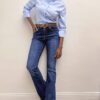 Il design a gamba svasata enfatizza la silhouette, rendendoli perfetti da abbinare sia con tacchi che con sneakers per un look versatile, dal giorno alla sera.