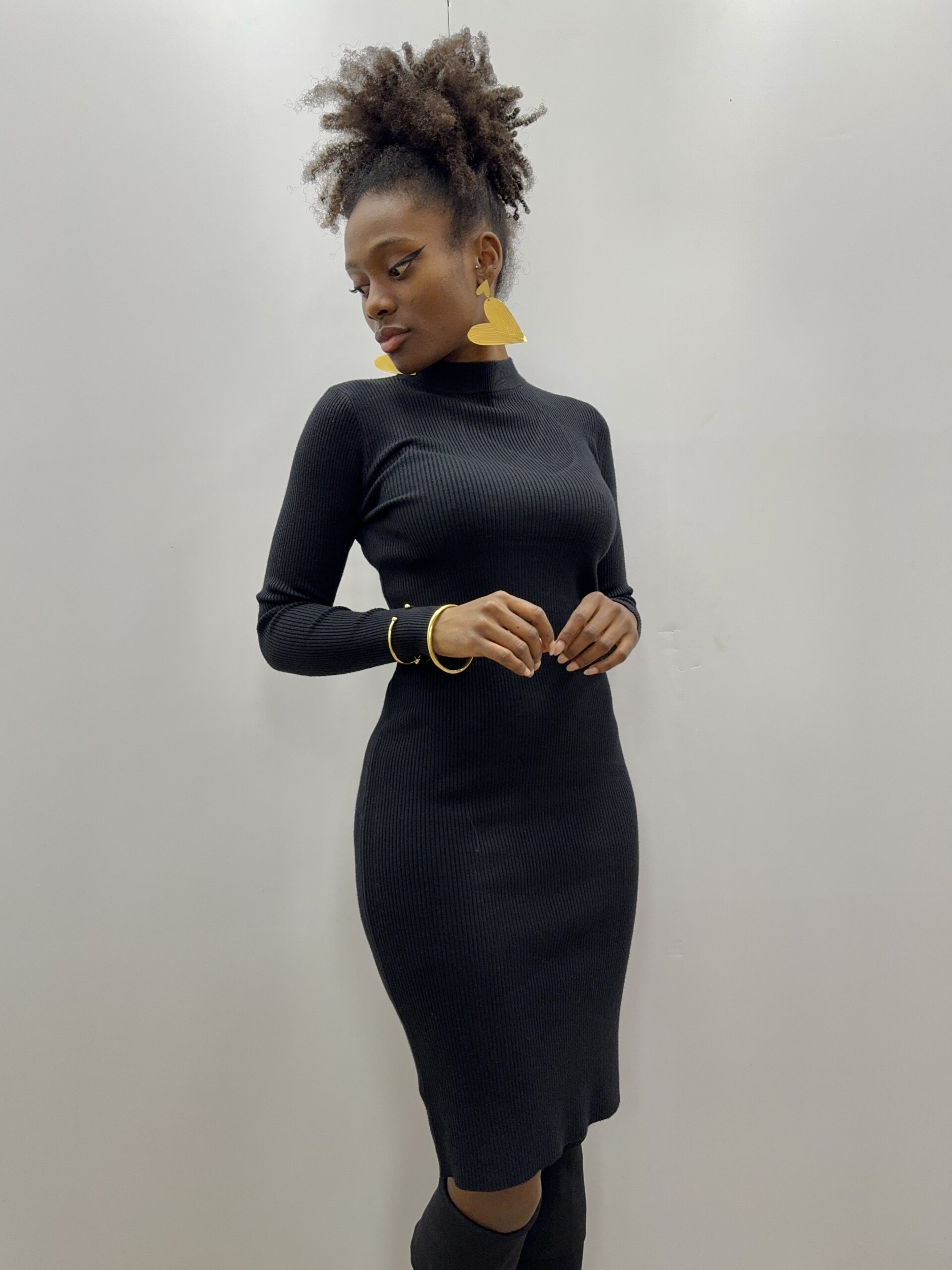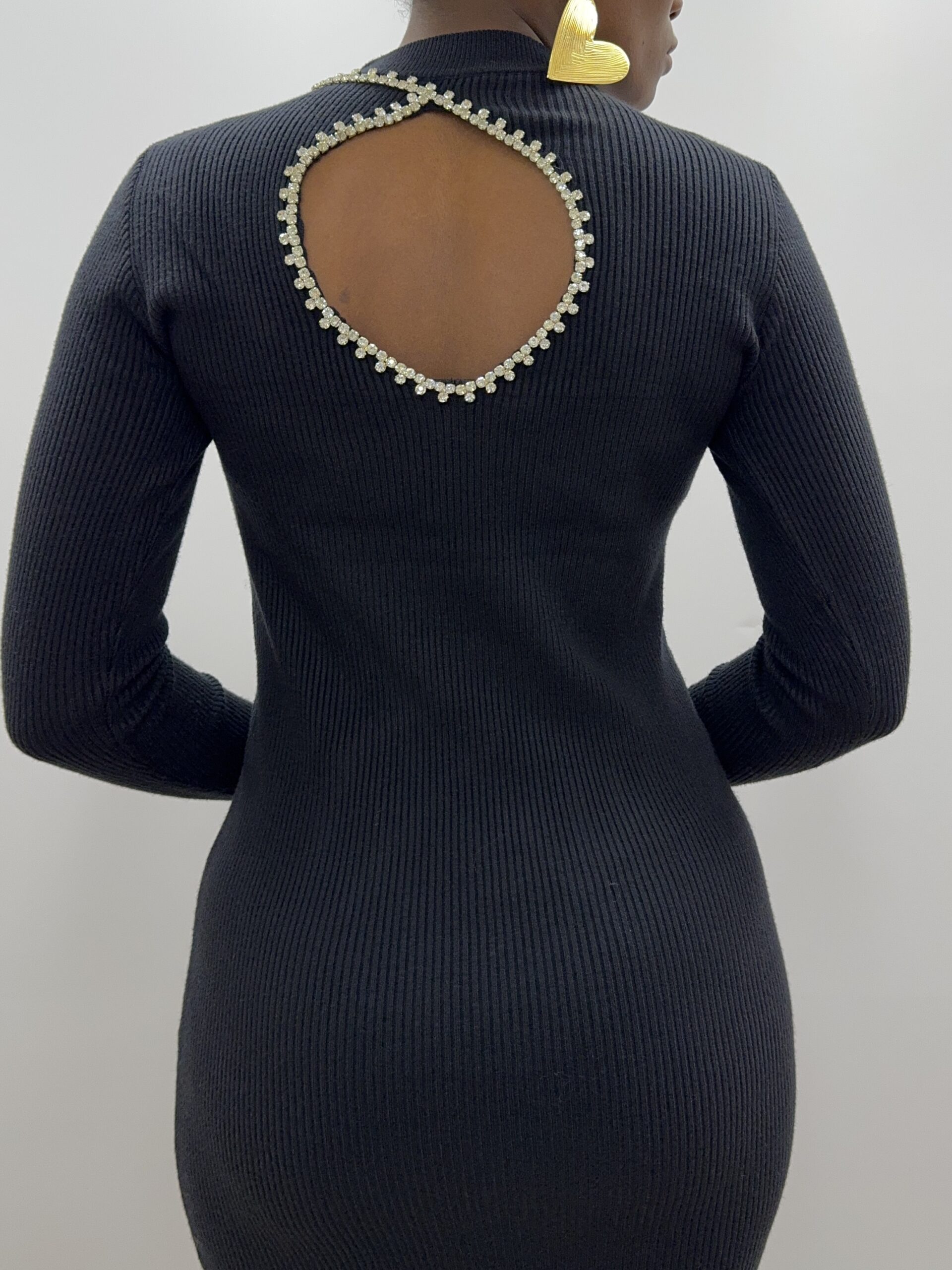 Abito a costina con dettaglio di strass sulla parte posteriore.