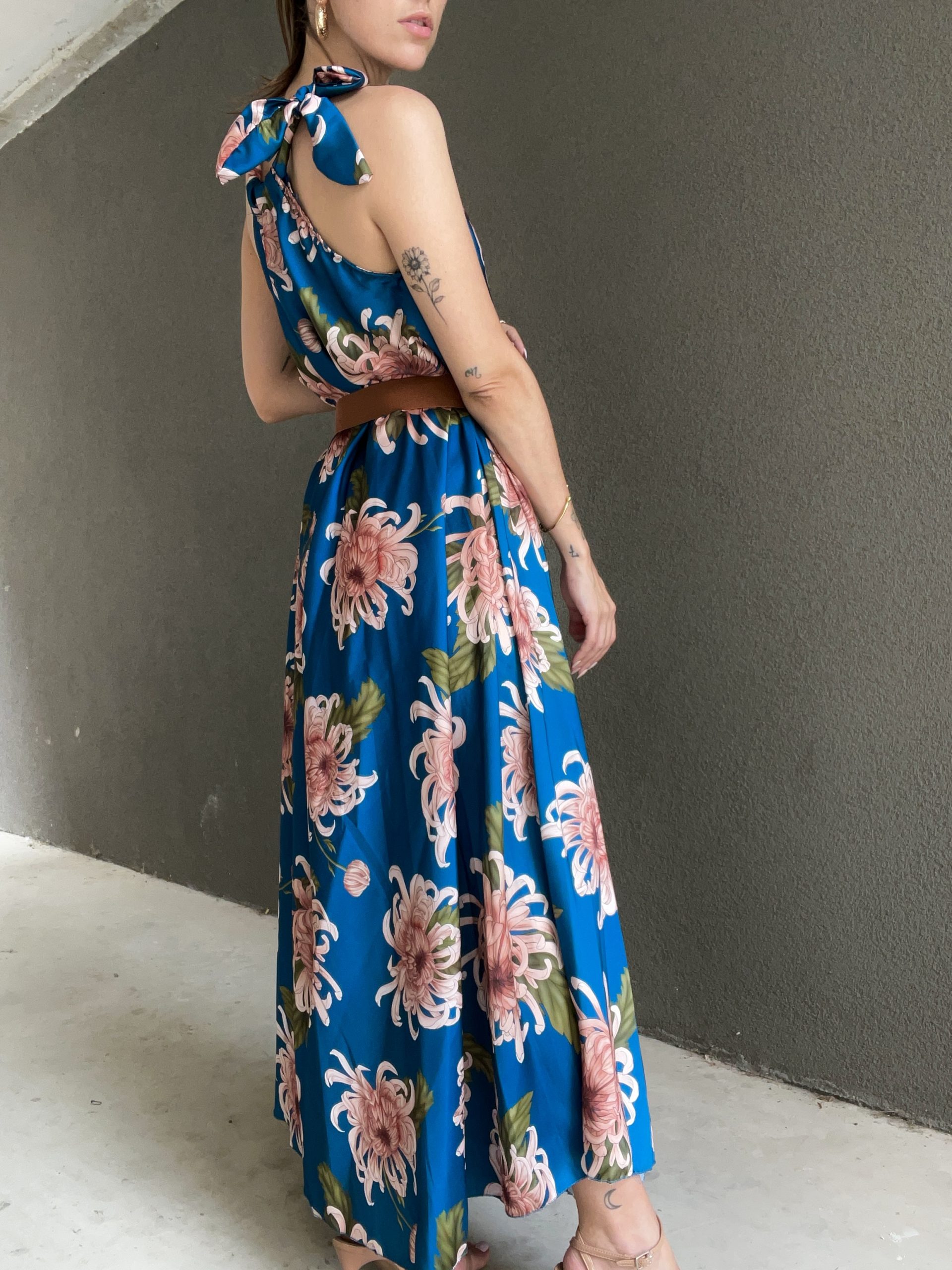 Abito con scollo all’americana e fiocco laterale. Tessuto morbido e scivolato. Veste fino a taglia 52.