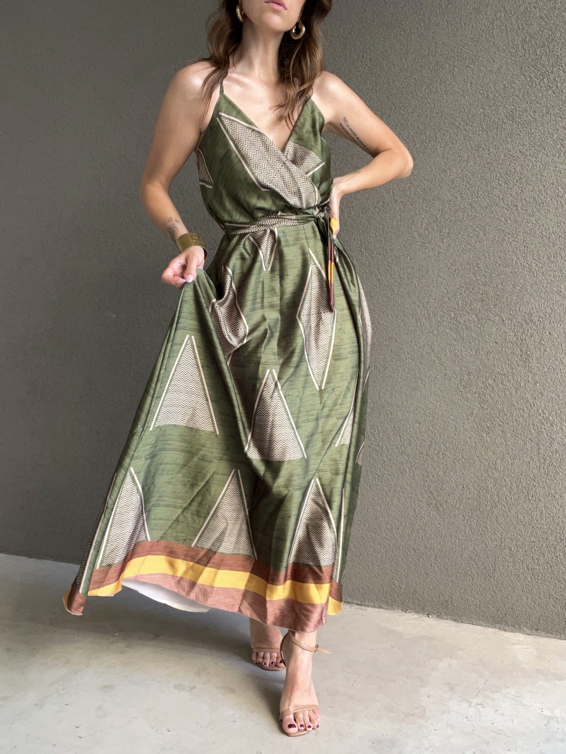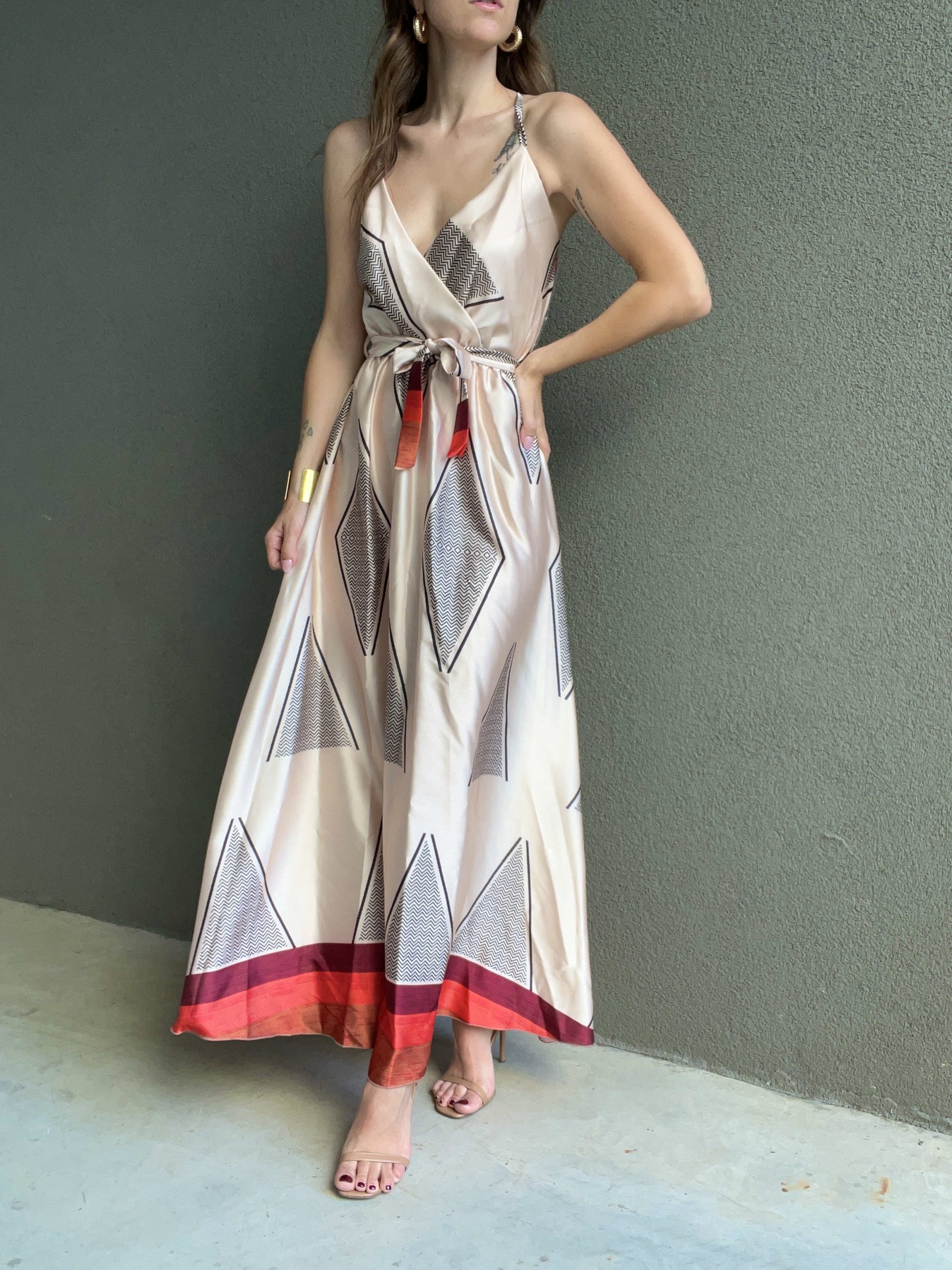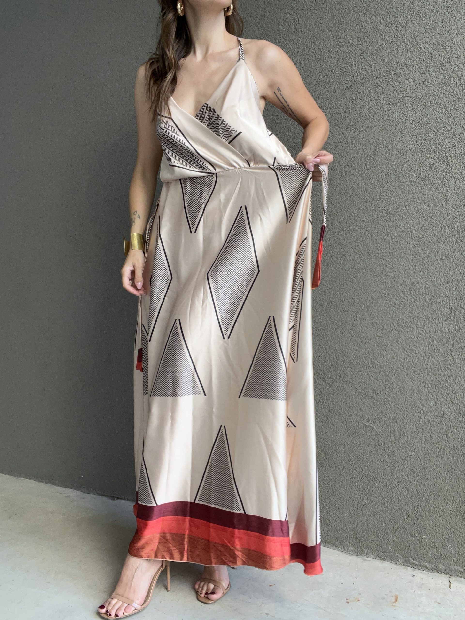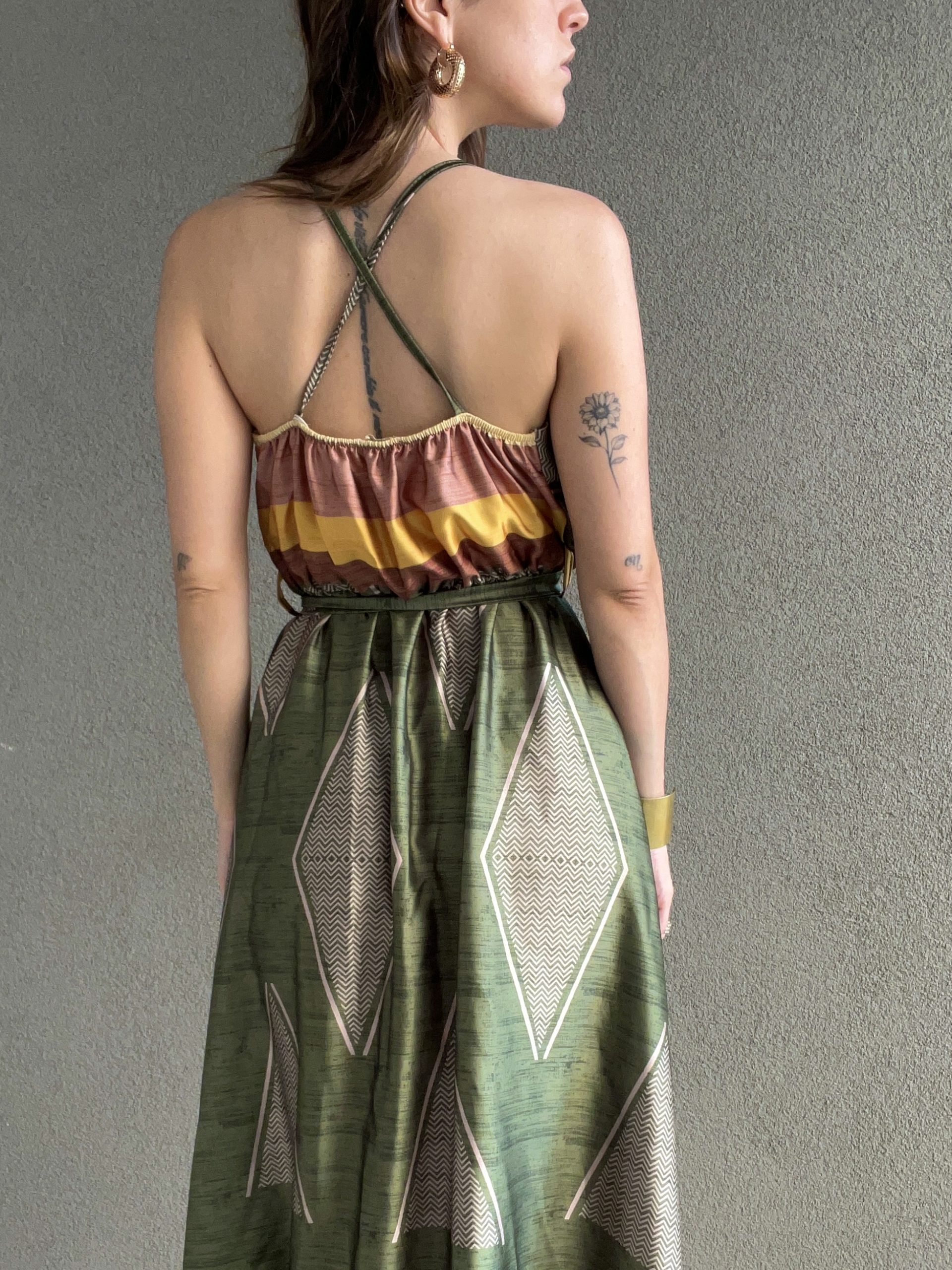 Abito con spalline incrociate sul retro. Elastico morbido in vita. Taglia unica: veste da taglia XS a taglia L.