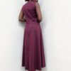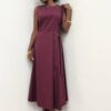 Abito smanicato lungo con spalline larghe con scollo arrotondato a tinta unita con dettaglio di bottone decorativo. Chiusura posteriore con cerniera.