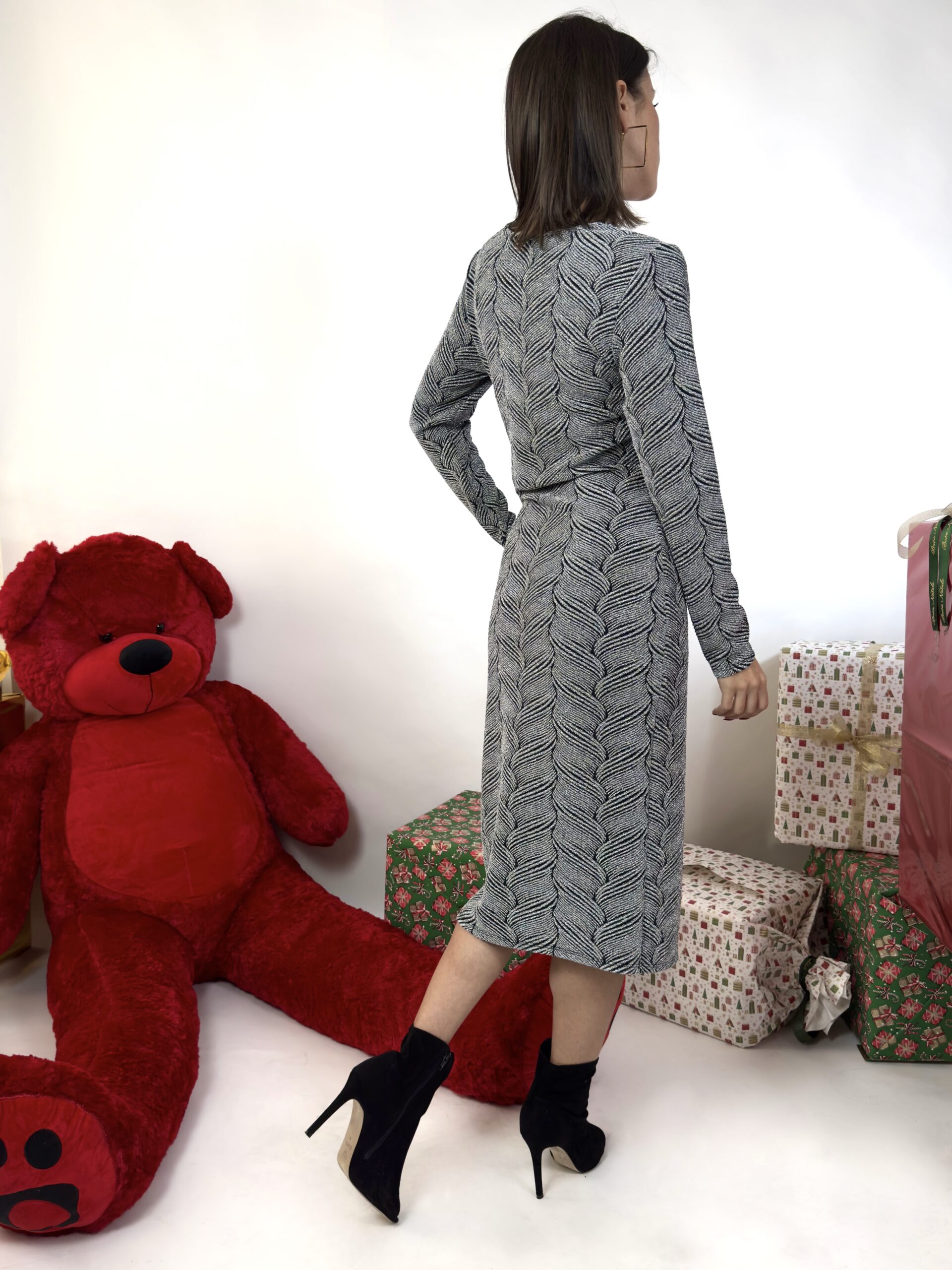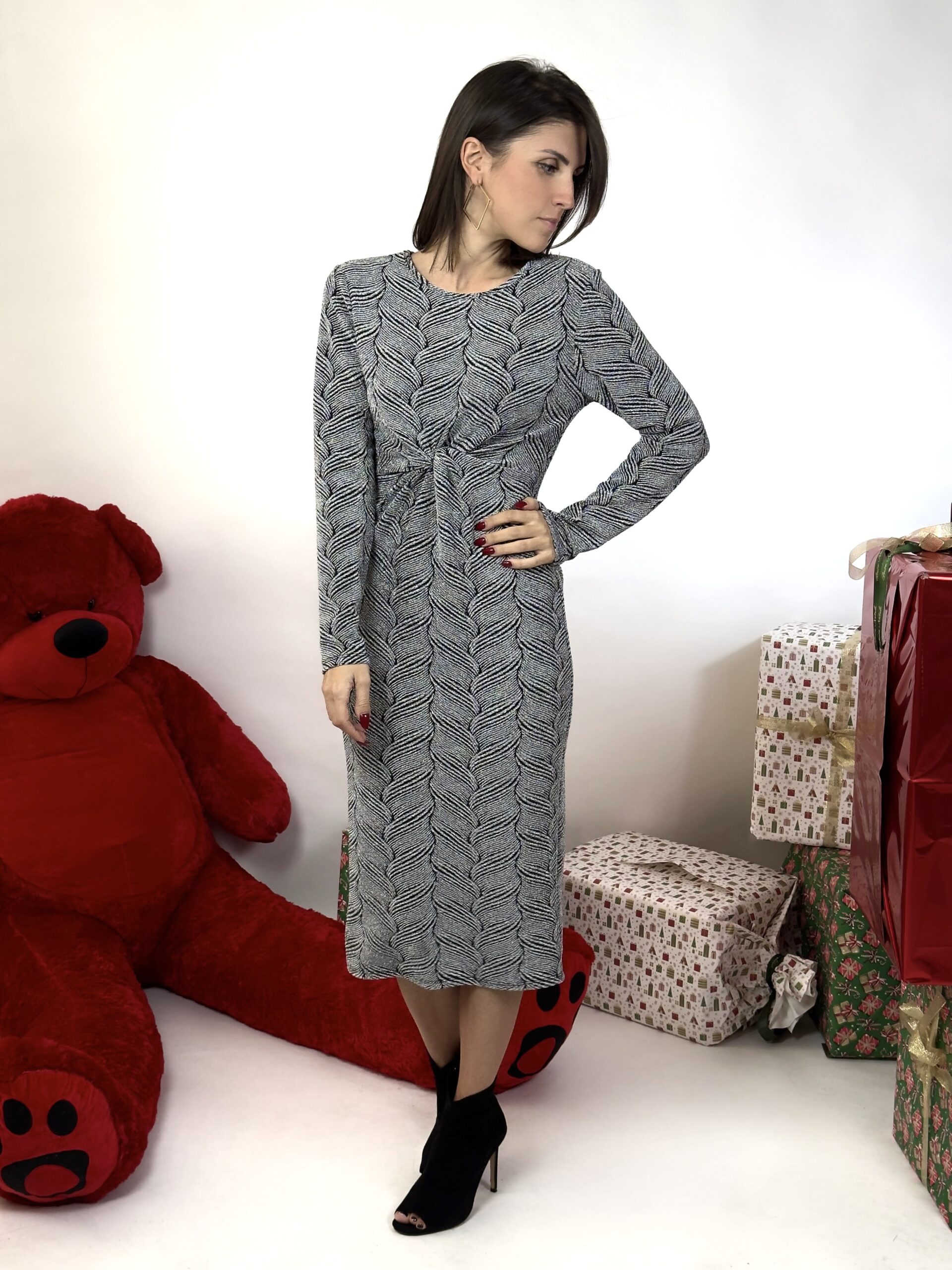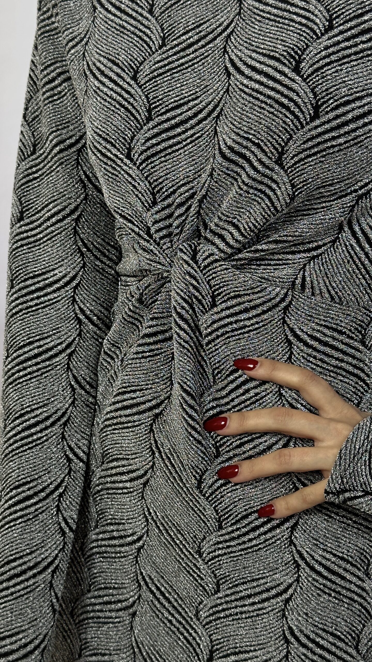 Abito lungo in lurex con nodo centrale con stampa. Elasticizzato.