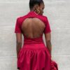Abito a palloncino a tinta unita con dettaglio di scollo circolare sulla parte posteriore.