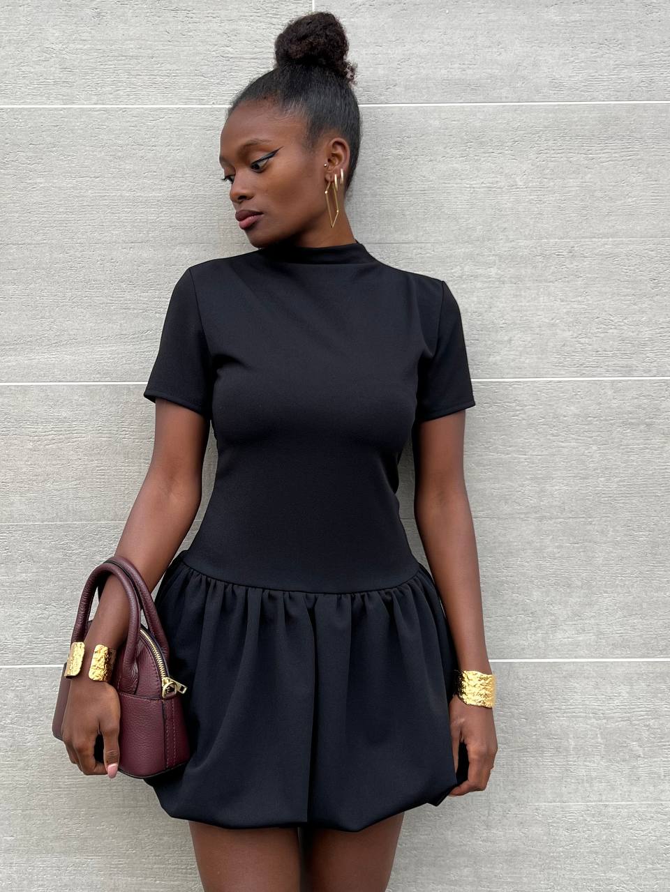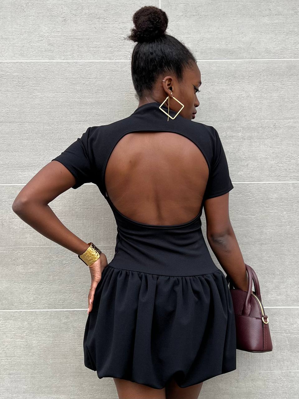 Abito a palloncino a tinta unita con dettaglio di scollo circolare sulla parte posteriore.