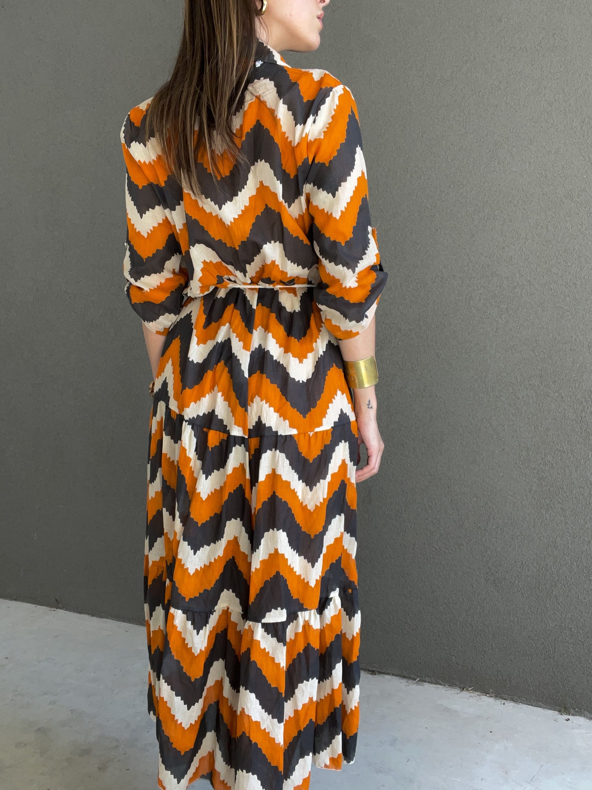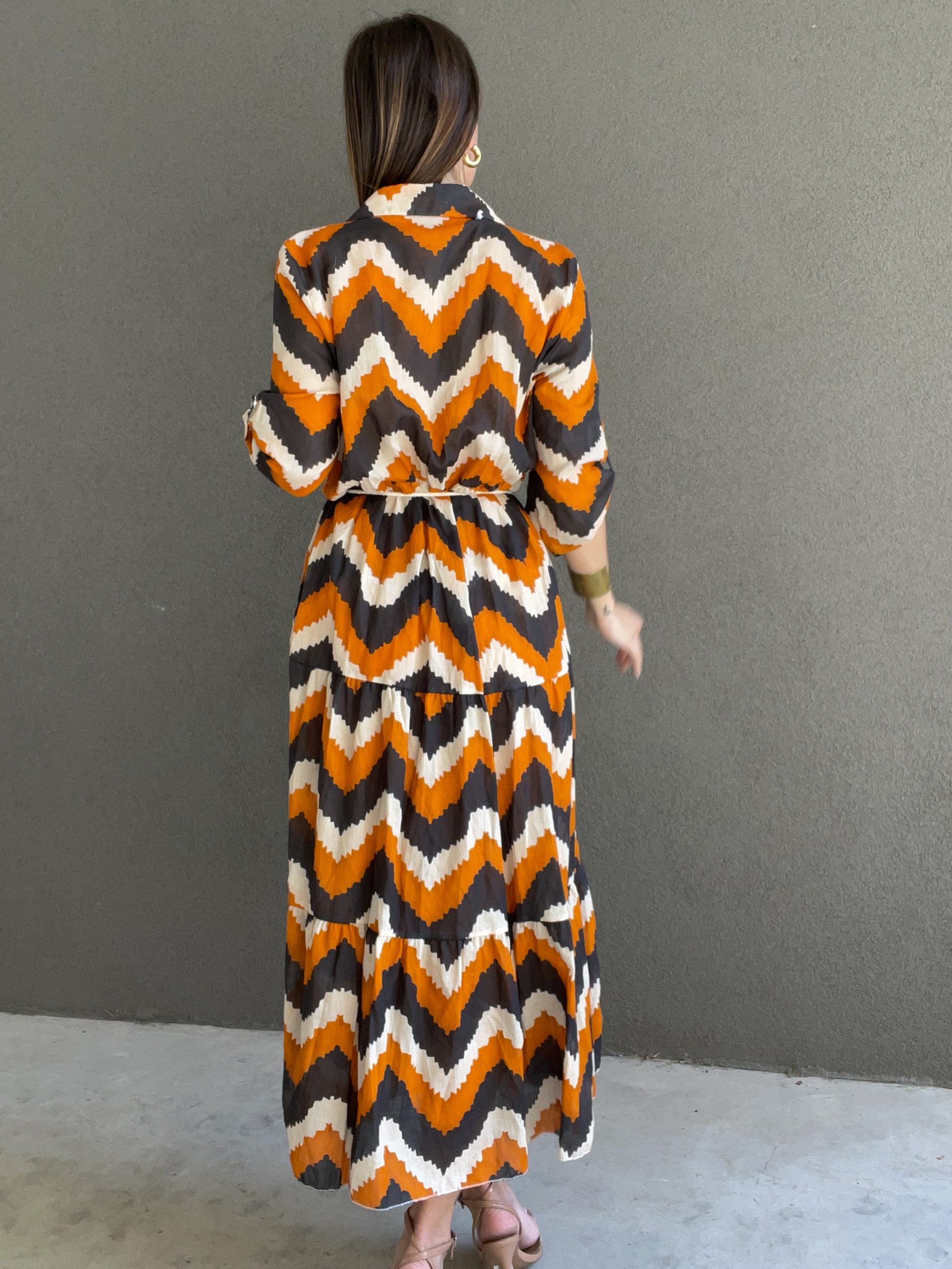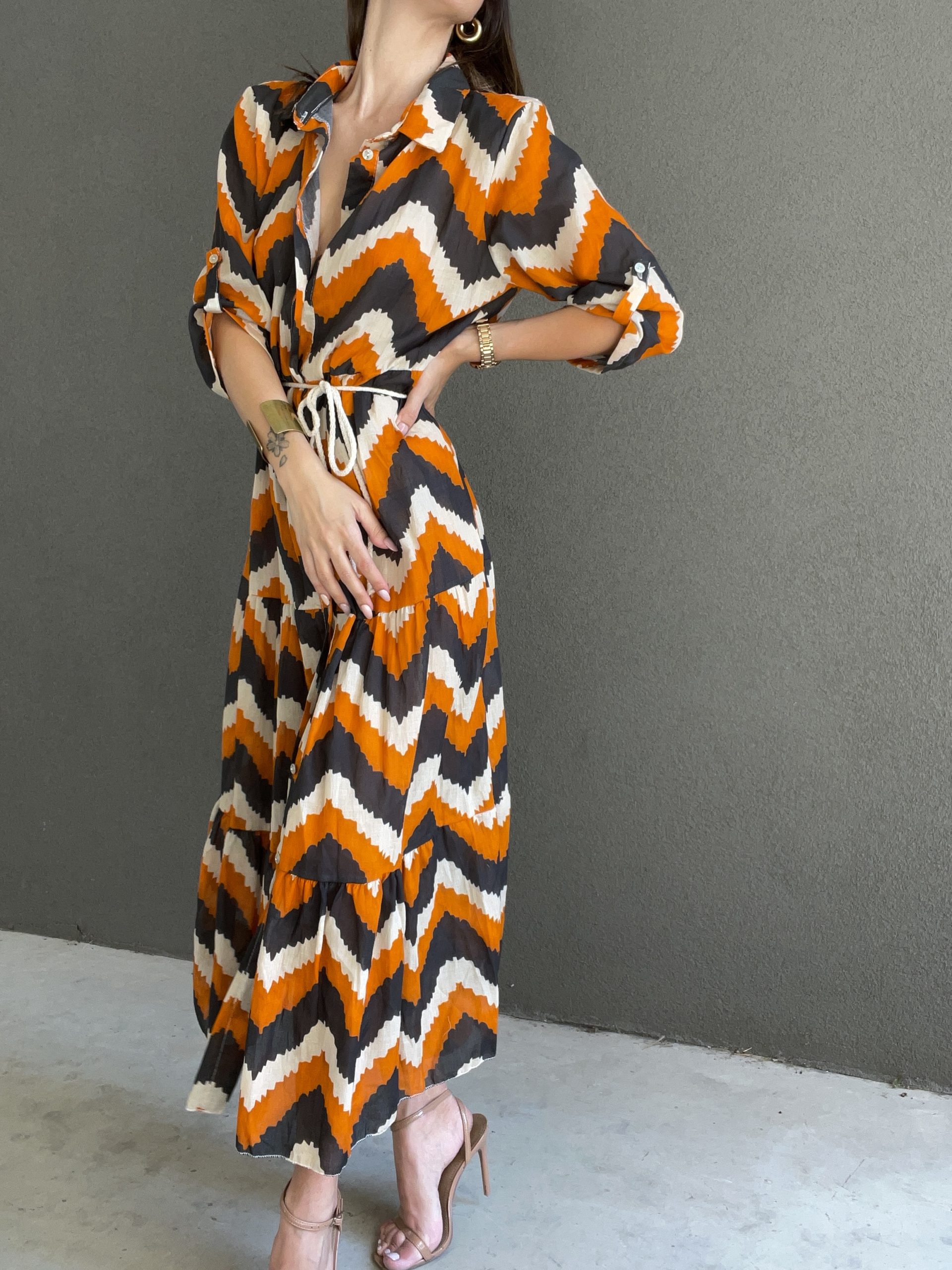 Abito chemisier con chiusura frontale con bottoni. Manica 3/4. Veste fino a taglia 48.