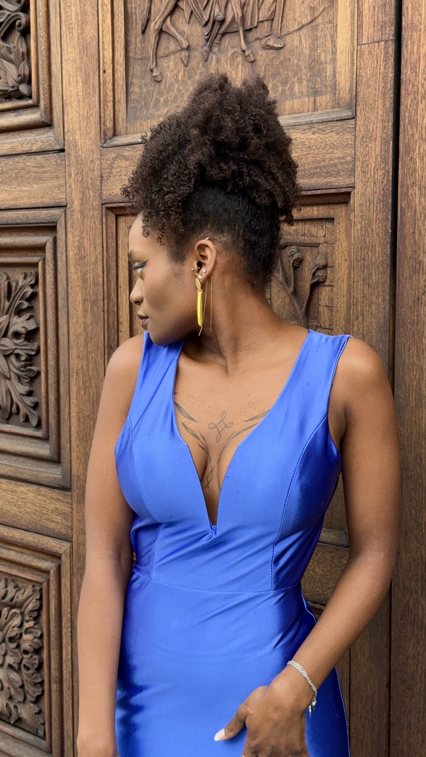 ABITO MELODY A SIRENA IN RASO BLU CHINA