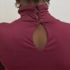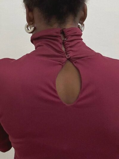 Il collo morbido, quasi a lupetto ma non strutturato, avvolge con eleganza senza costrizioni, aggiungendo un tocco di raffinatezza. Sul retro, la chiusura con tre bottoncini tono su tono completa il design con un dettaglio discreto ma ricercato. Fodera interna in viscosa.
