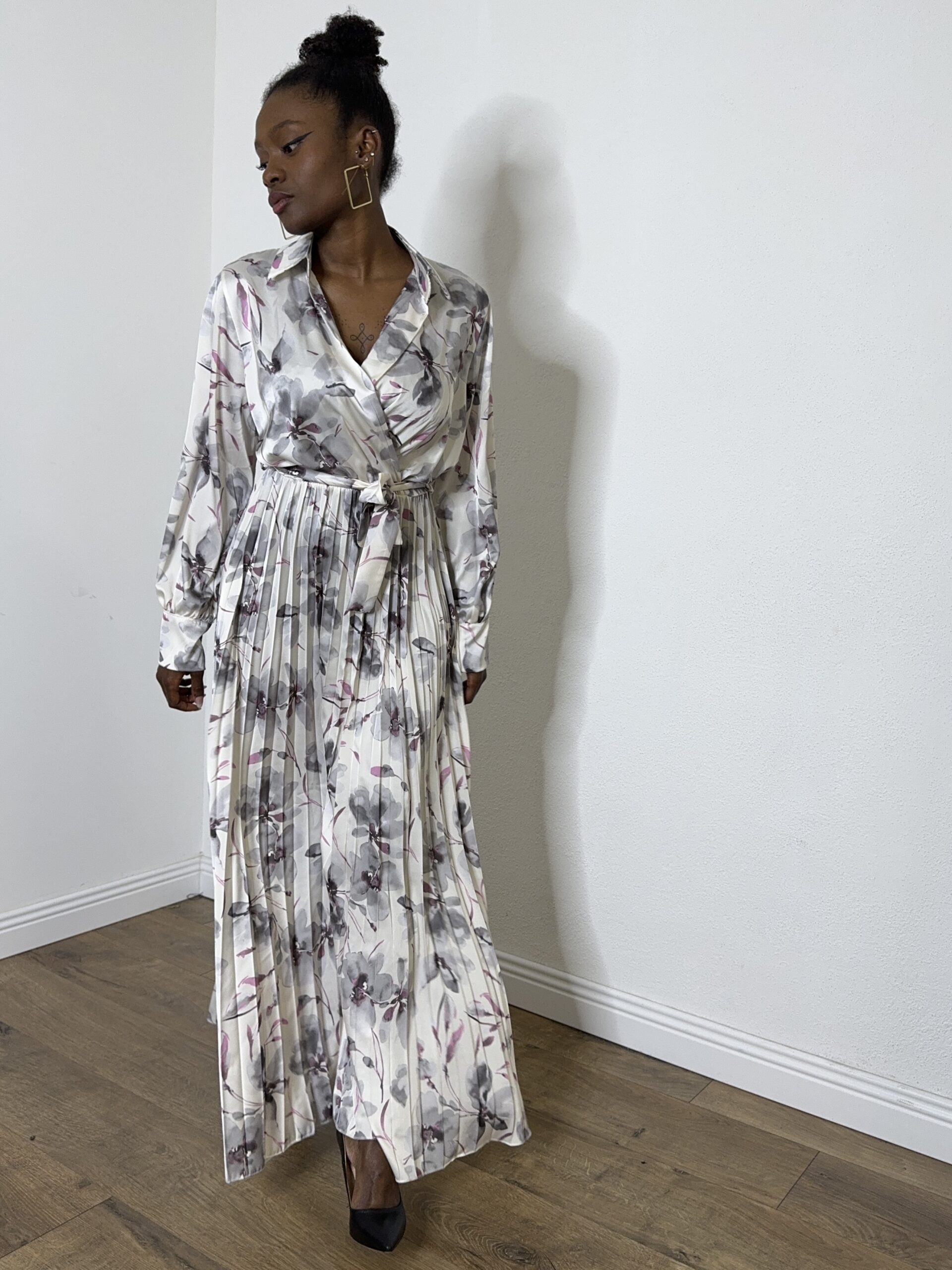 ABITO PLISSE’ FIORELLO GRIGIO