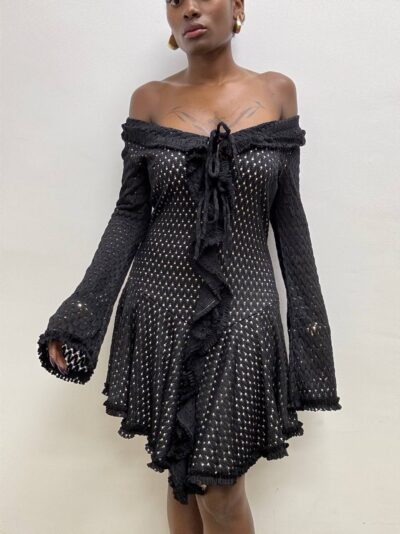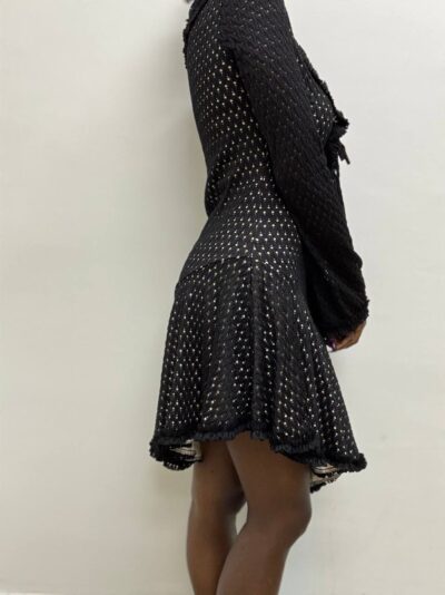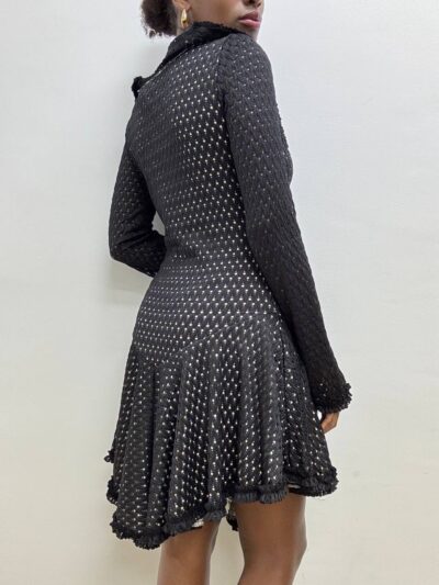 Eleganza e sensualità si fondono in questo abito midi traforato, pensato per valorizzare la silhouette con raffinatezza. Il tessuto elasticizzato segue le linee del corpo con comfort e leggerezza, mentre la fodera interna garantisce copertura e vestibilità perfetta.