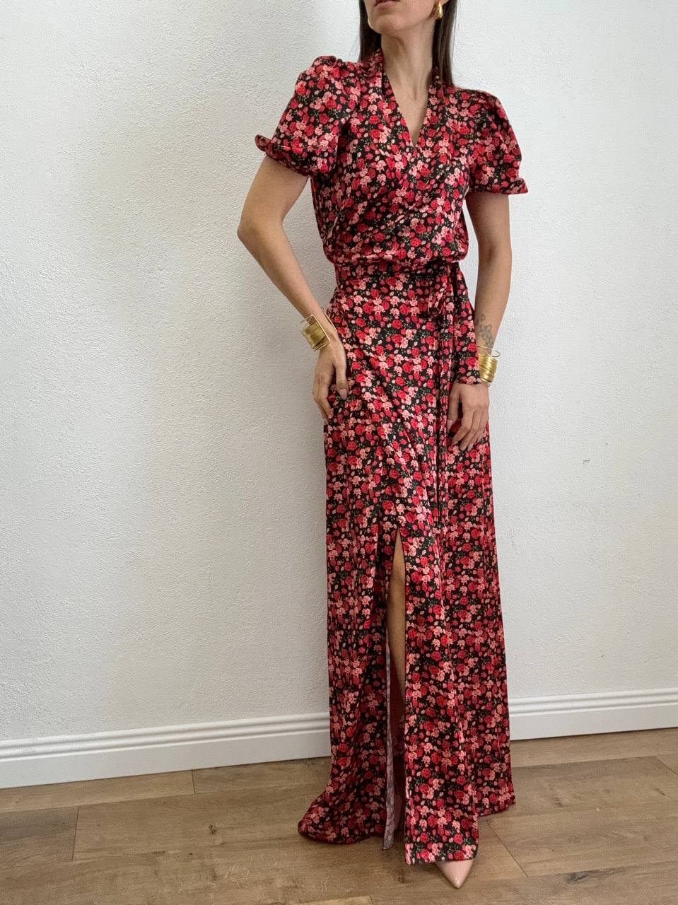 Abito a portafoglio con scollo a V con stampa fiorata con cinturino tono su tono.