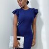 Abito lungo con dettaglio di volant sulla manica a tinta unita.
