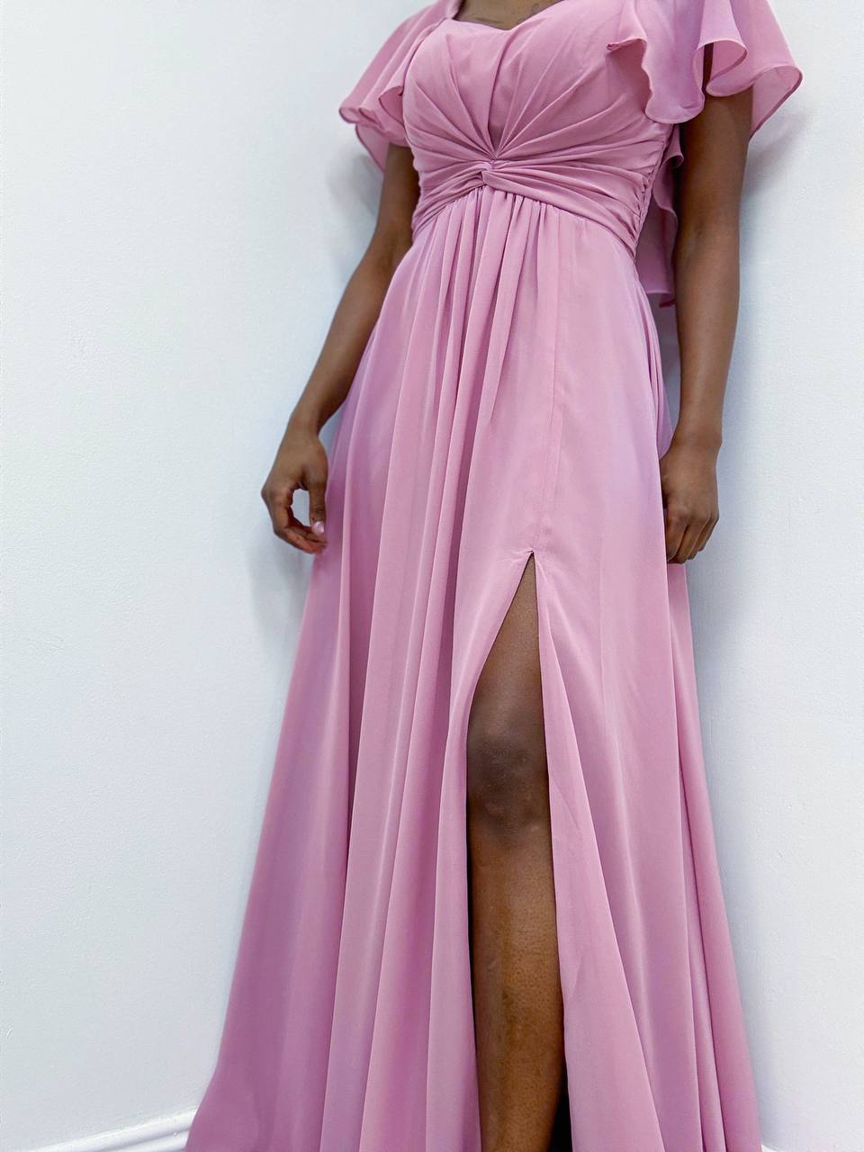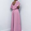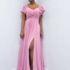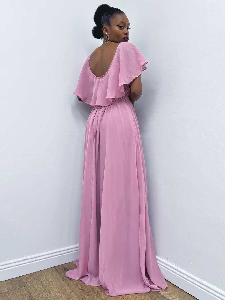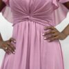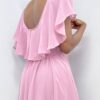 Abito con dettaglio di volant con coppe preformate con fiocco sulla parte centrale. Foderato internamente.