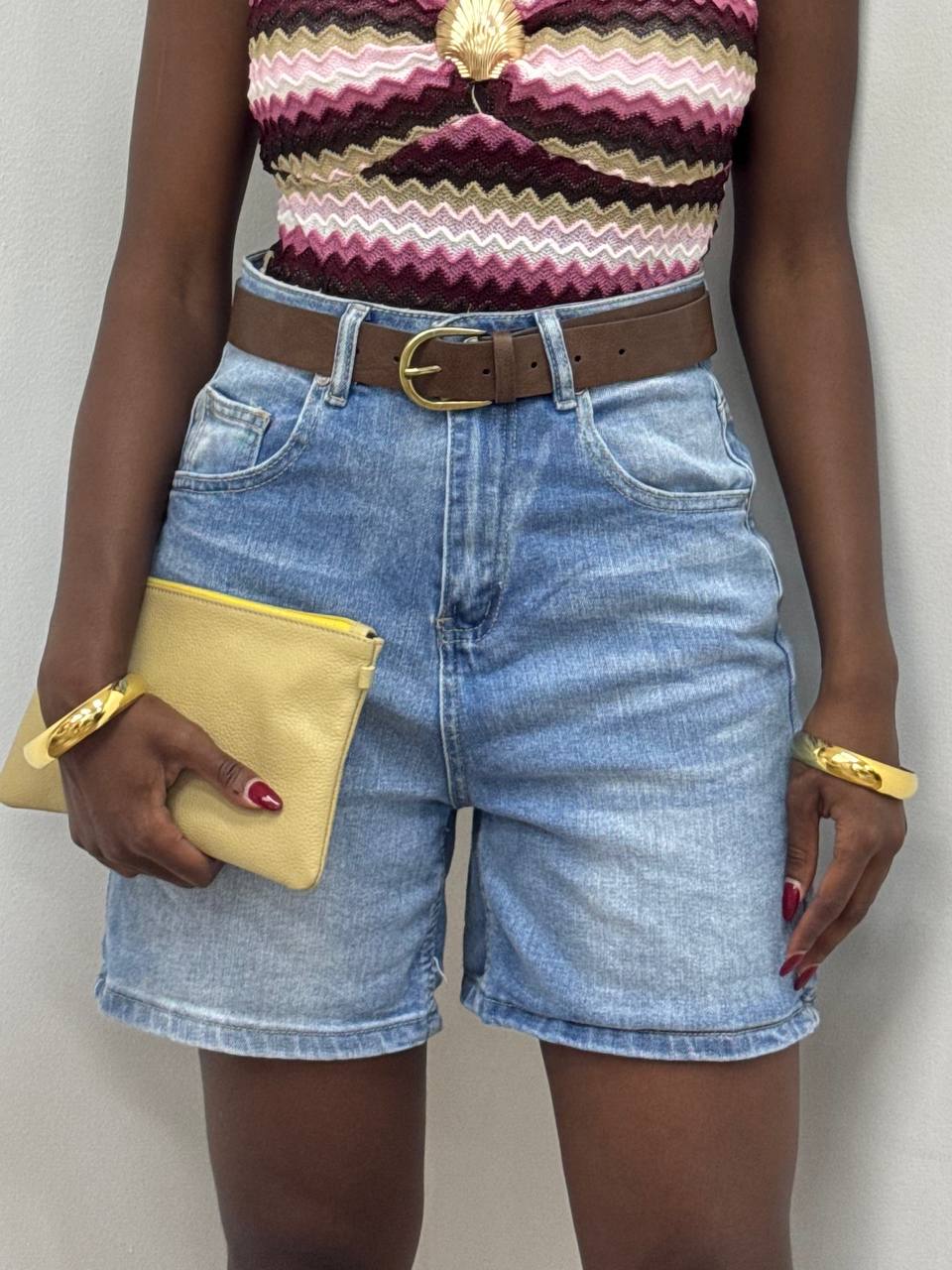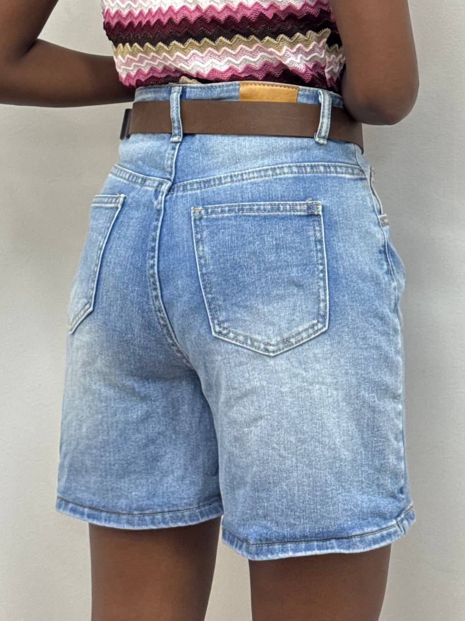 Bermuda a vita alta con dettaglio di bottone e zip con taschine laterali.