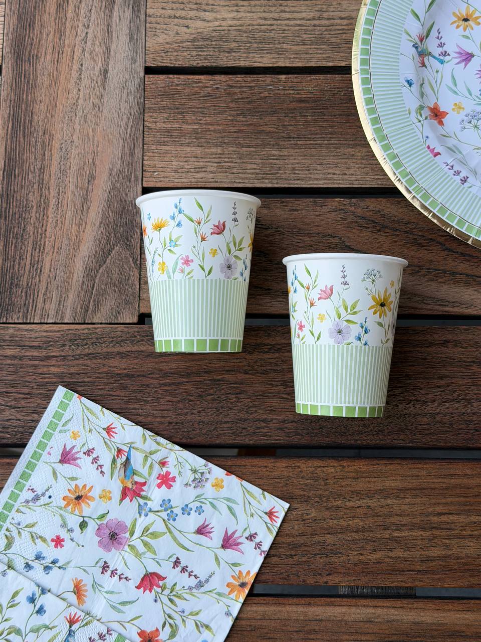 Bicchieri compostabili in cartoncino con delicata stampa floreale, ideali per eventi, feste e momenti all’aperto in modo sostenibile. Capacità 250 cc, perfetti per servire bevande fresche o calde con un tocco di eleganza eco-friendly.