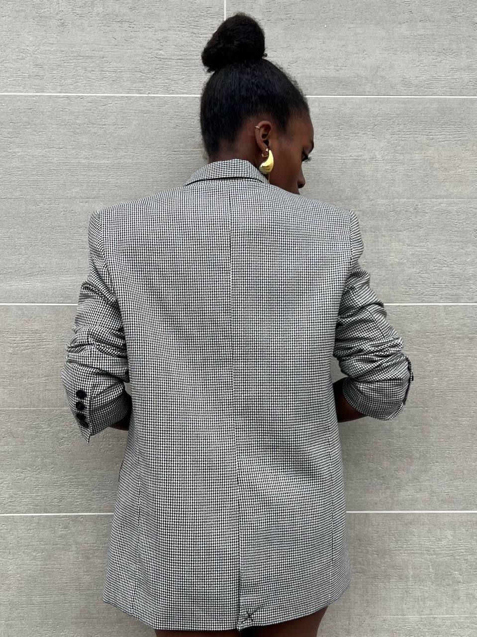 Blazer con spallina insellata con falda con chiusura di un bottone con dettaglio di taschine laterali.