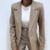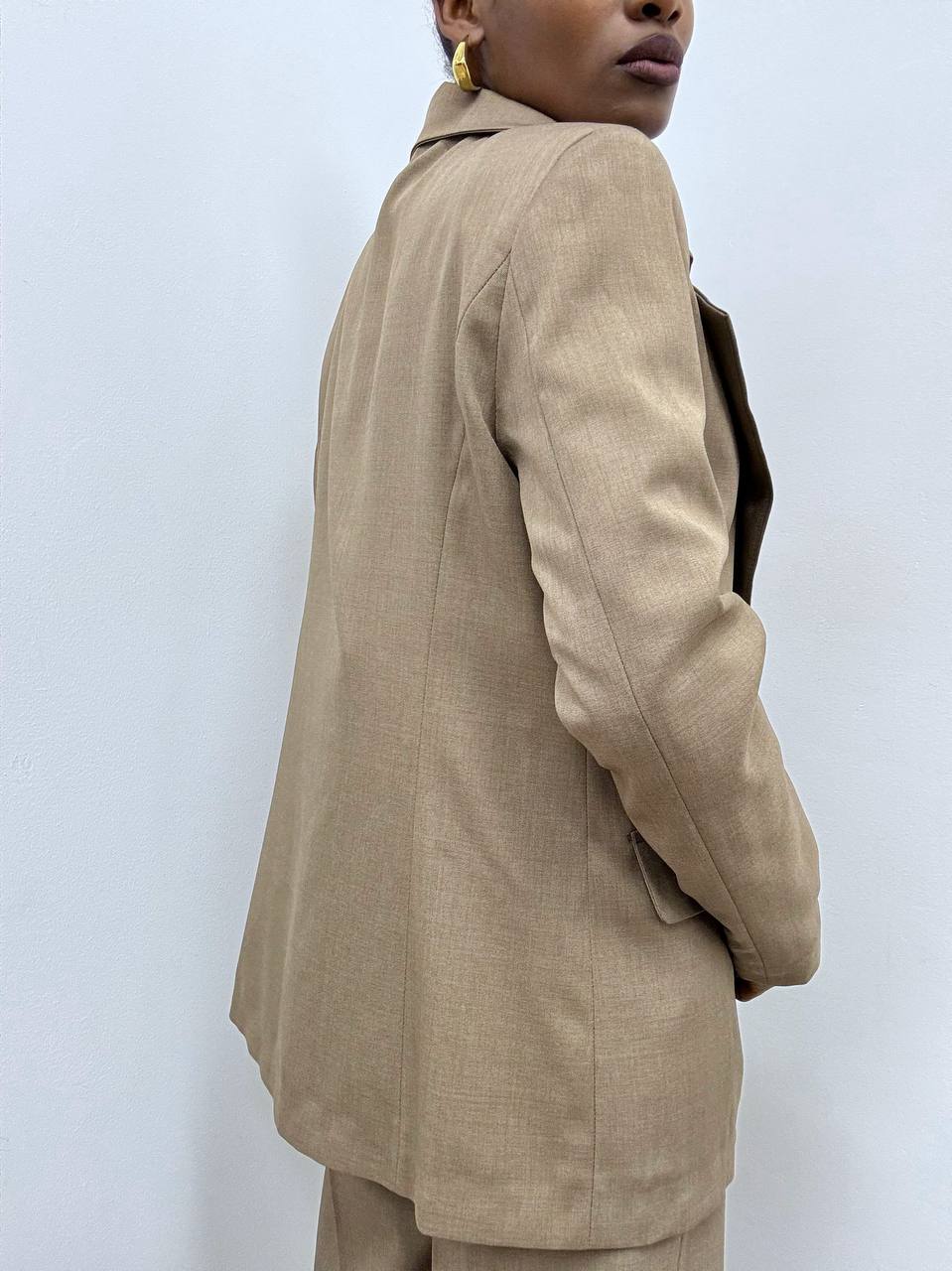 Blazer strutturato con spalline insellate, caratterizzato da un raffinato colletto con revers e chiusura monobottone che valorizza la silhouette. Il capo è interamente foderato internamente, per un comfort ottimale e una vestibilità impeccabile. Completano il design i dettagli di finte taschine, che aggiungono un tocco sartoriale e contemporaneo senza appesantire la linea.