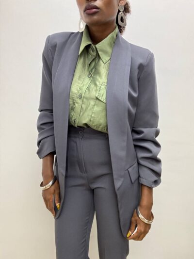 Versatile, comoda, elegante: questa giacca è la base ideale per creare un completo perfetto da indossare H24, 7 giorni su 7. Un capo pensato per accompagnarti in ogni momento della giornata, dall’ufficio all’aperitivo, senza rinunciare a stile e praticità. Realizzata in un tessuto fluido e compatto, ha un taglio morbido e strutturato allo stesso tempo, con spalline leggermente rinforzate che donano forma e portamento, senza appesantire la silhouette. La manica arricciata aggiunge un dettaglio femminile e moderno, mentre le patte laterali richiamano un design sartoriale essenziale ma curato. La giacca è taglia unica, studiata per vestire comodamente dalla taglia 40 alla 44/46, adattandosi con armonia a diverse fisicità. Per un look completo e impeccabile, abbinala al suo pantalone coordinato dal taglio sigaretta: un set elegante, funzionale e sempre attuale, perfetto per ogni occasione che sia una giornata di lavoro, un evento speciale o una semplice uscita quotidiana. Un capo che unisce stile, comfort e versatilità: il tuo alleato perfetto, sempre.
