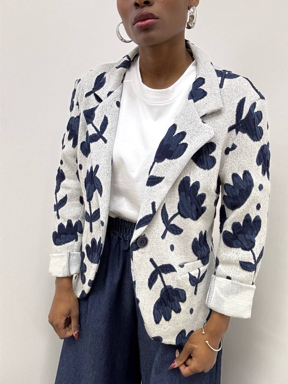 Blazer in misto cotone, leggero e traspirante, perfetto per affrontare la stagione primaverile con stile. Il tessuto morbido e piacevole al tatto garantisce una vestibilità comoda e confortevole per tutta la giornata.
