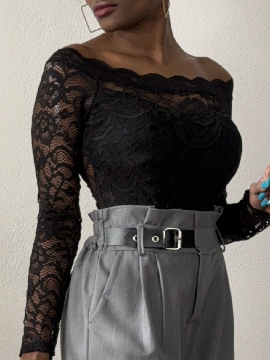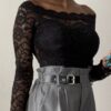 Body con scollo a girocollo ricoperto completamente da pizzo.