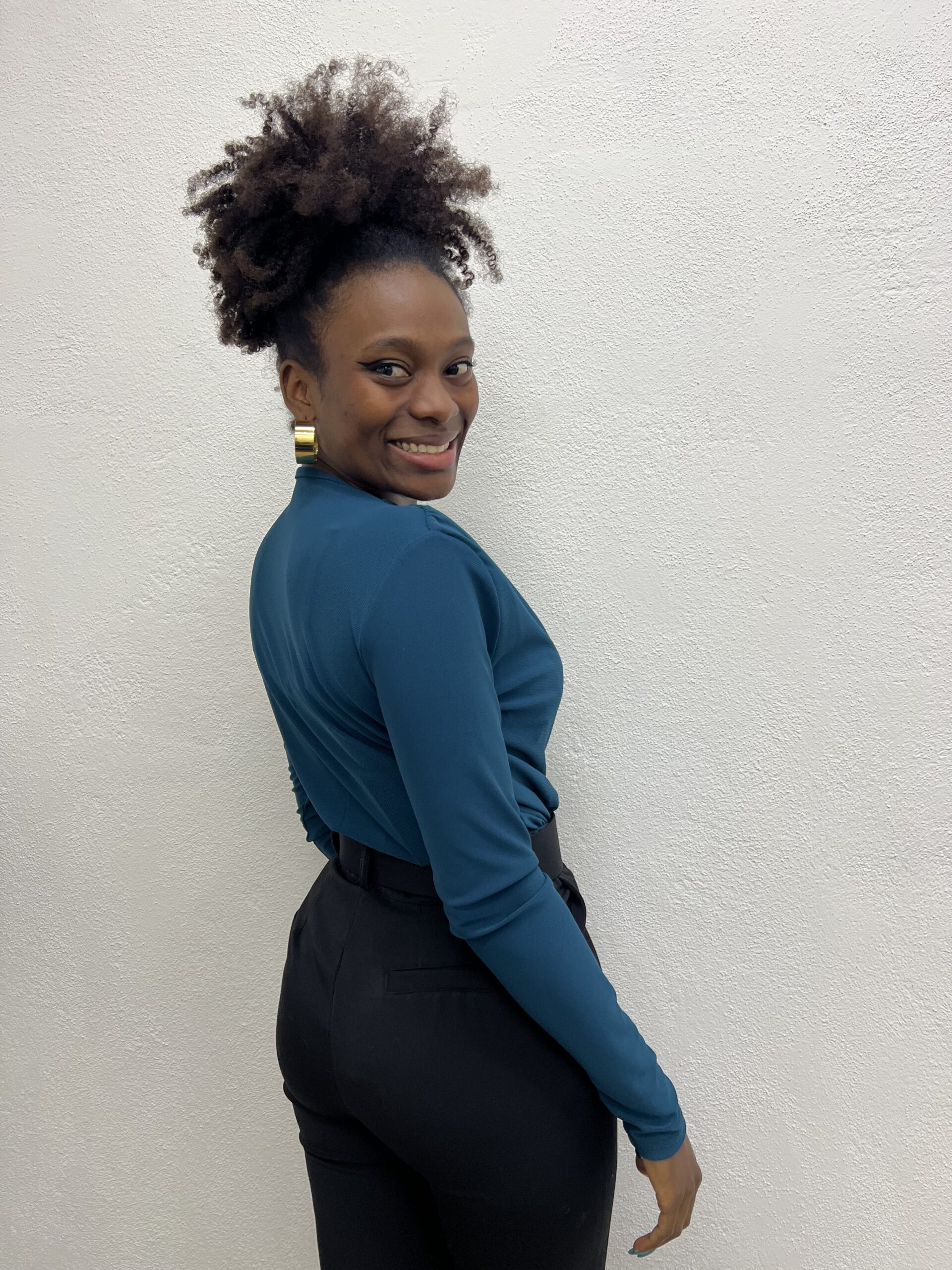 Body con scollo a V elasticizzata sul punto vita con pince su tutta la lunghezza.