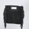 Borsa in vera pelle scamosciata dal design elegante e contemporaneo. Dotata di tracolla. Il modello si distingue per il raffinato dettaglio di frange nere che conferiscono un tocco boho-chic e dinamico, ideale per completare look sia casual che sofisticati. Internamente è dotata di taschina interna con zip di chiusura.