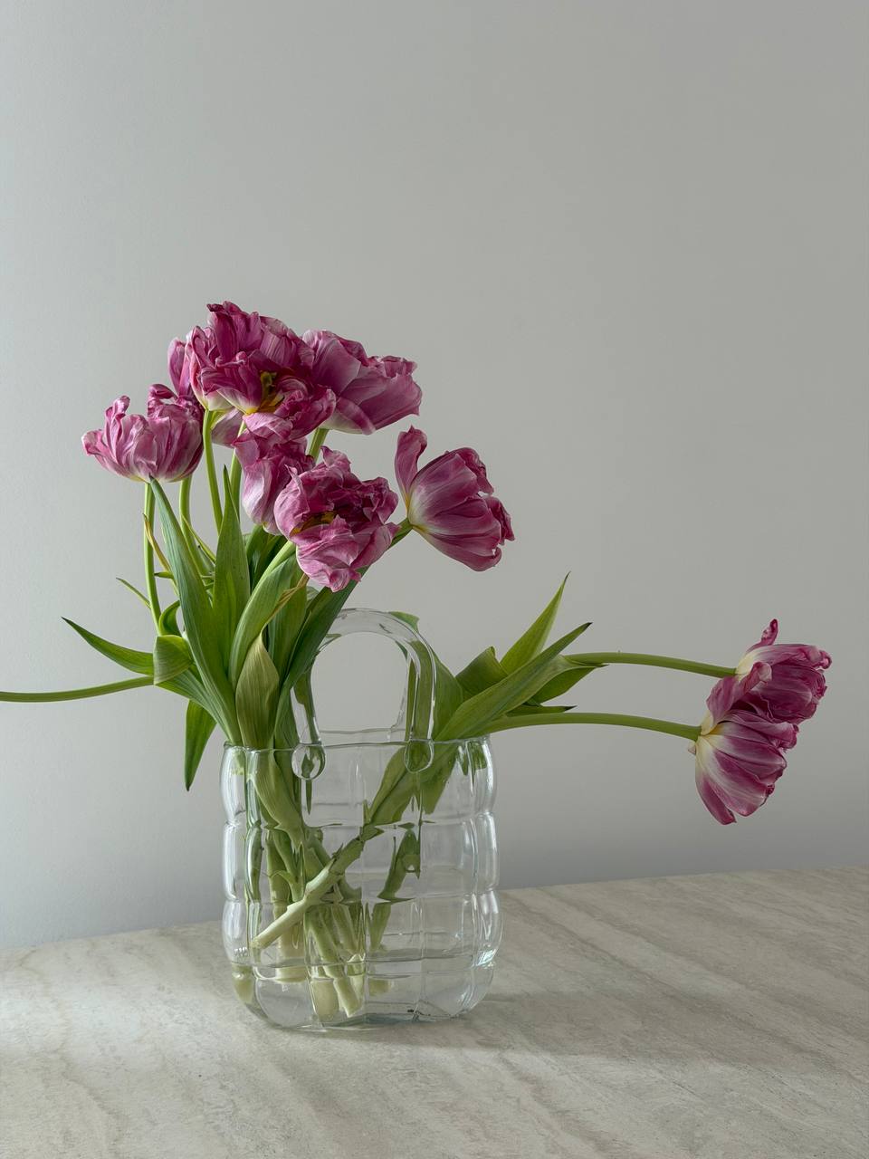 Il vaso in vetro borsetta Marais è una soluzione moderna e versatile per creare composizioni floreali semplici o elaborate.