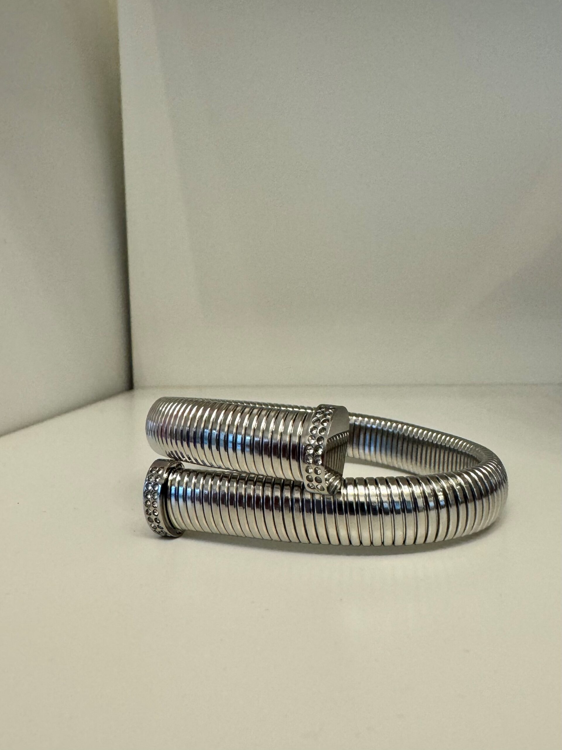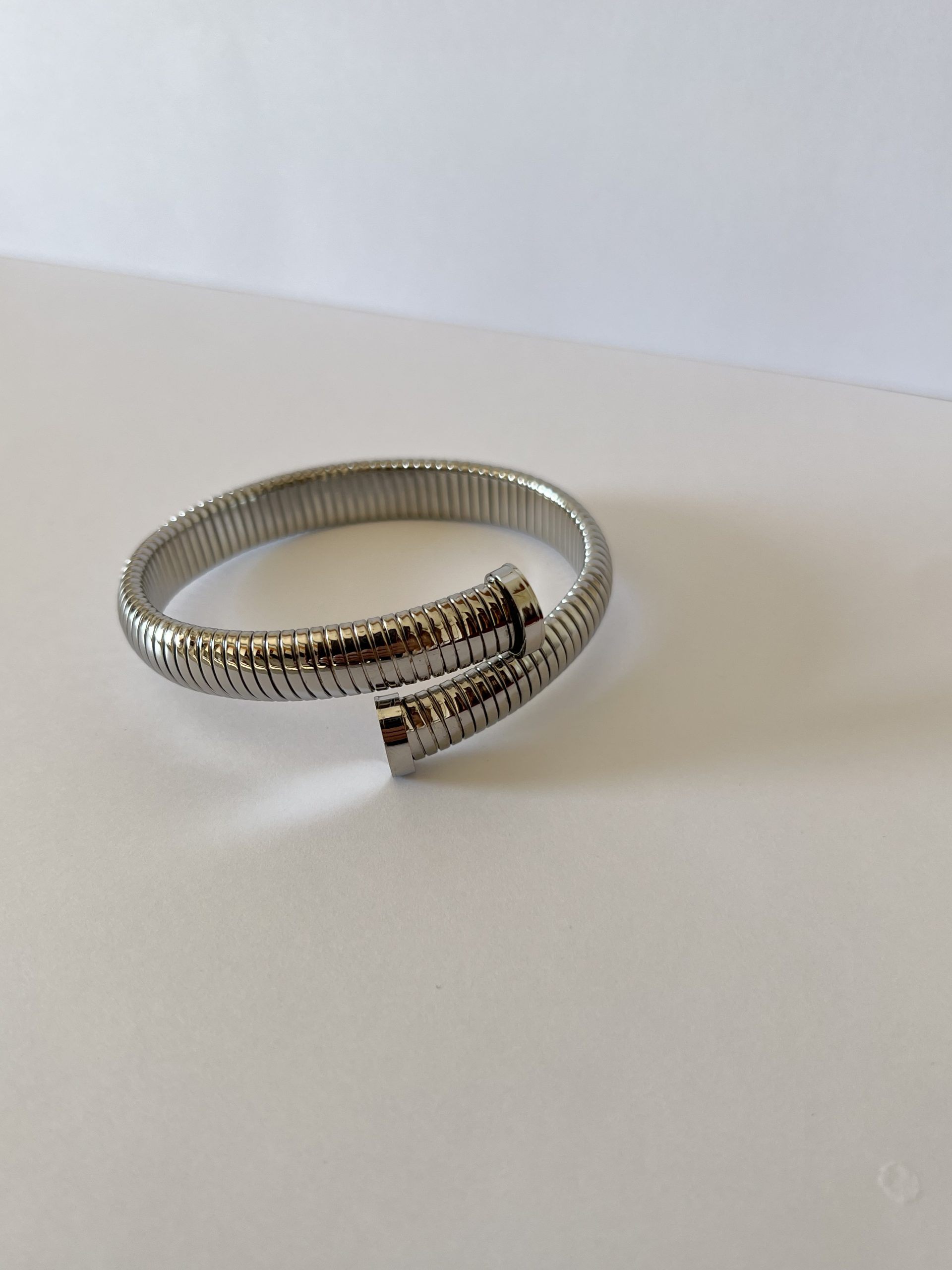 Bracciale a vite regolabile zigrinato. Elasticizzato, disponibili sia oro che argento.