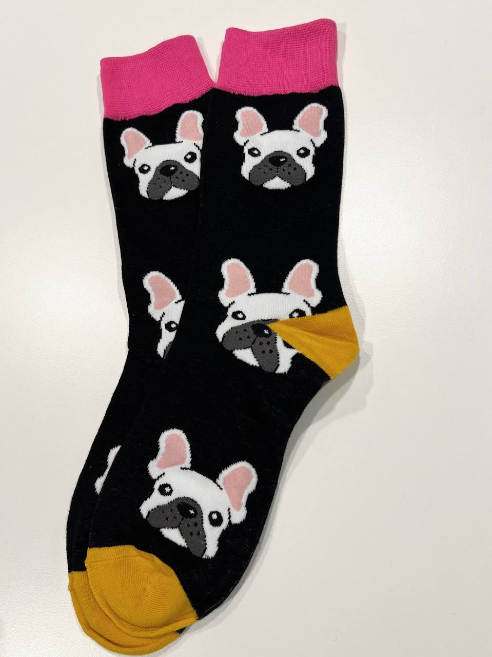 Calze elasticizzate con dettaglio di bulldog tutta la lunghezza.