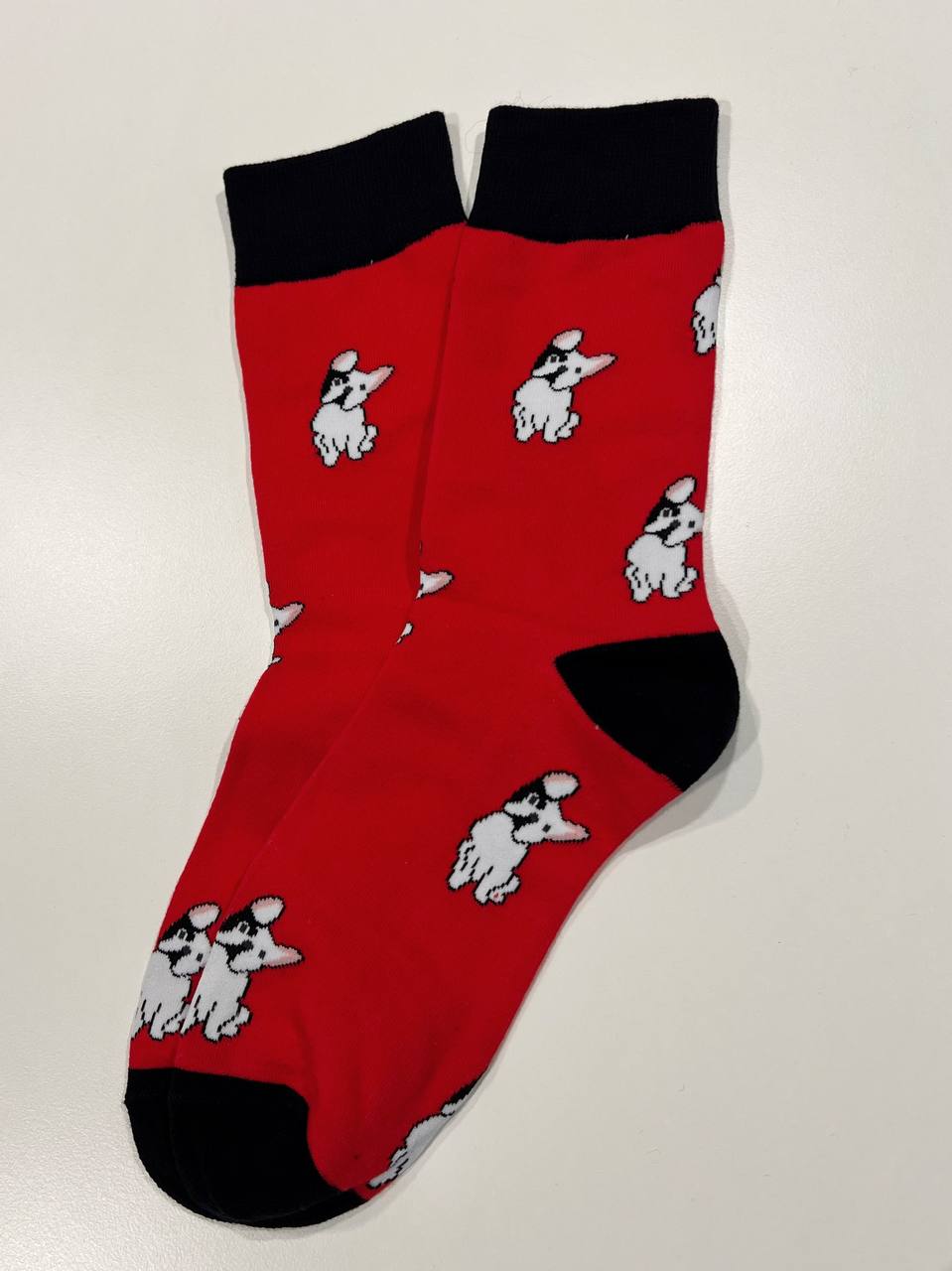 Calze elasticizzate con dettaglio di bulldog su tutta la lunghezza.