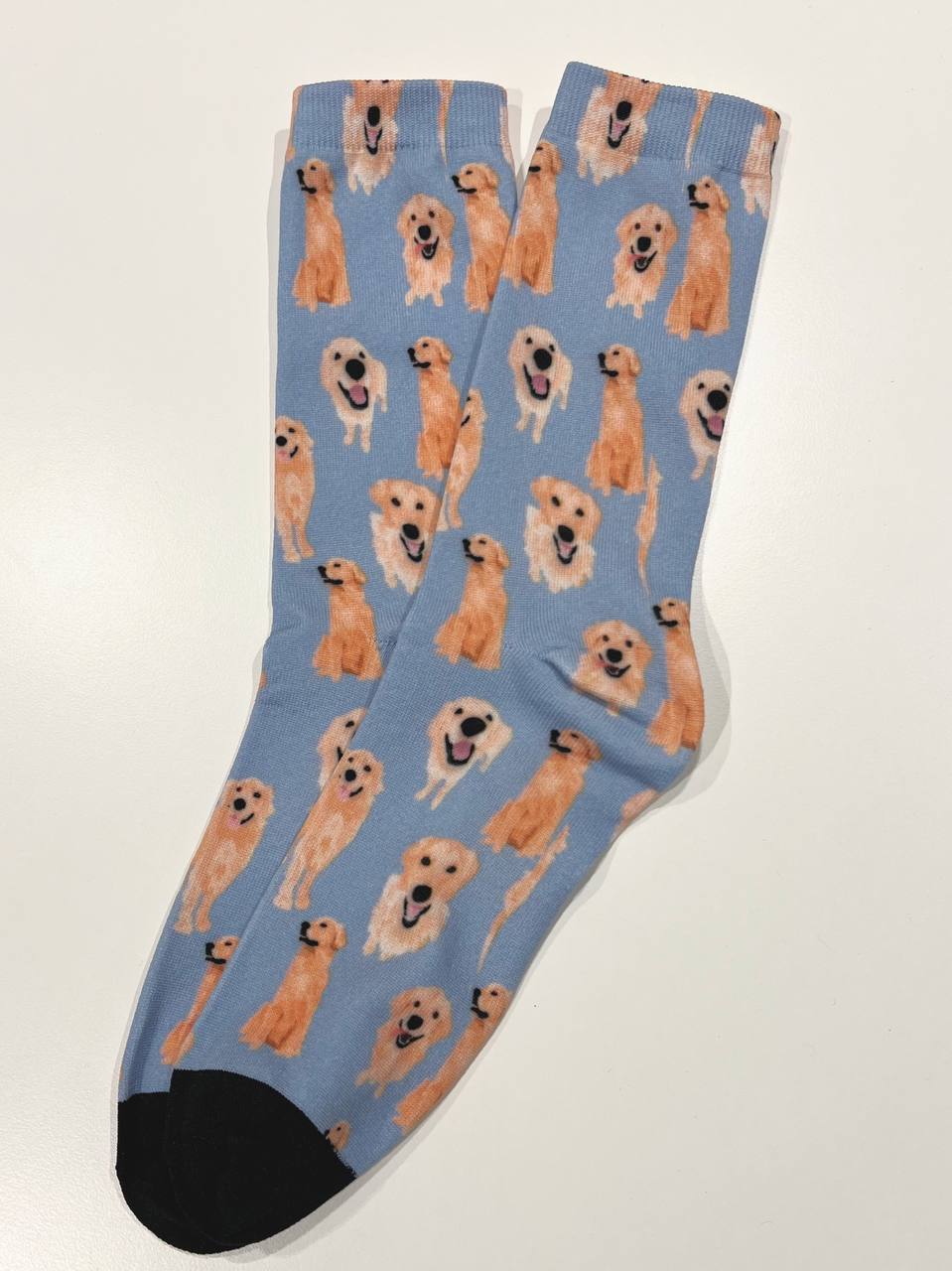 Calze elasticizzate con dettaglio di labrador su tutta la lunghezza.