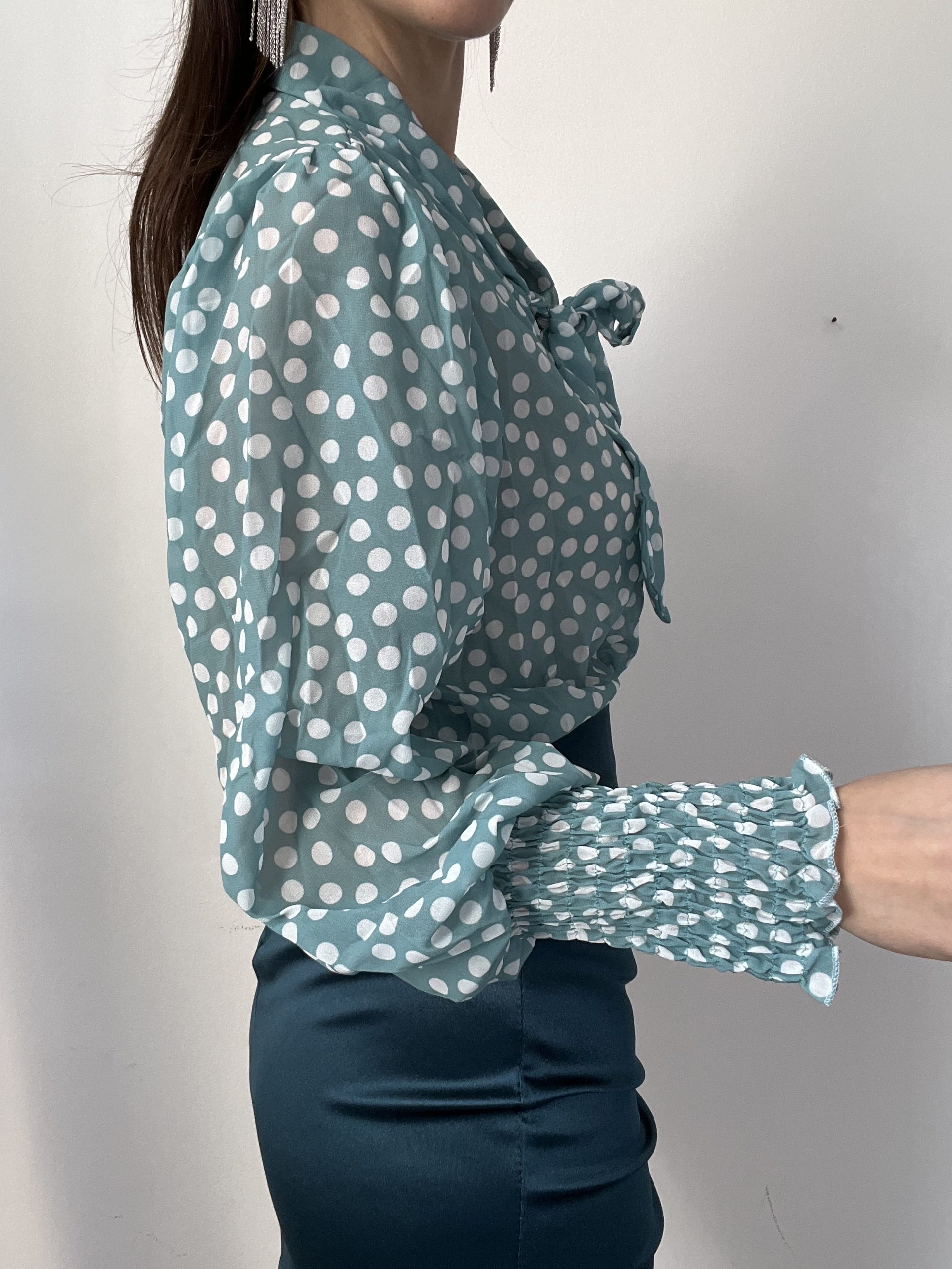 Camicia a pois a kimono con polsino alto elasticizzato.