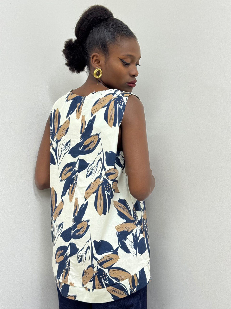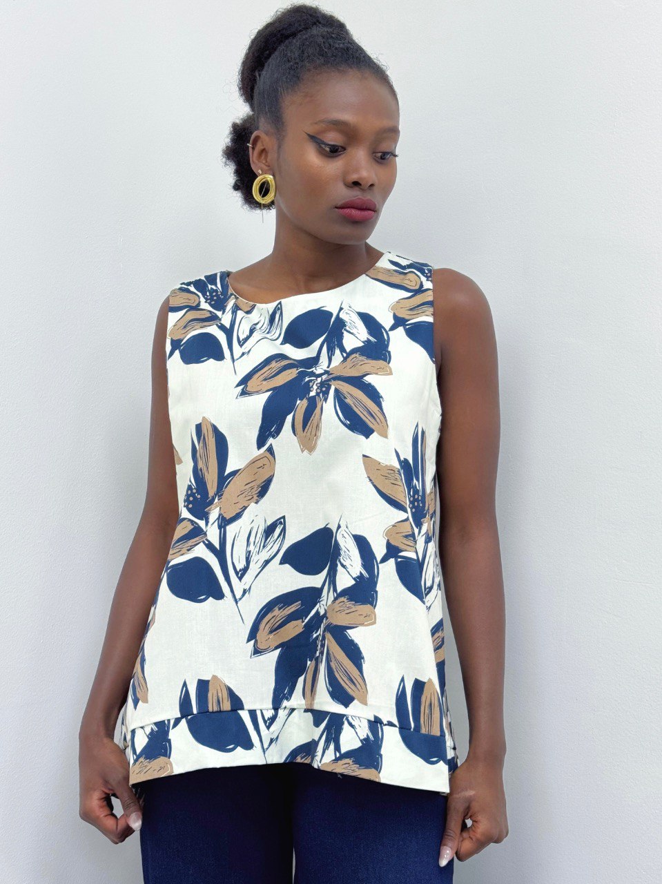 Canotta smanicata con dettaglio di stampa su tutta la lunghezza.