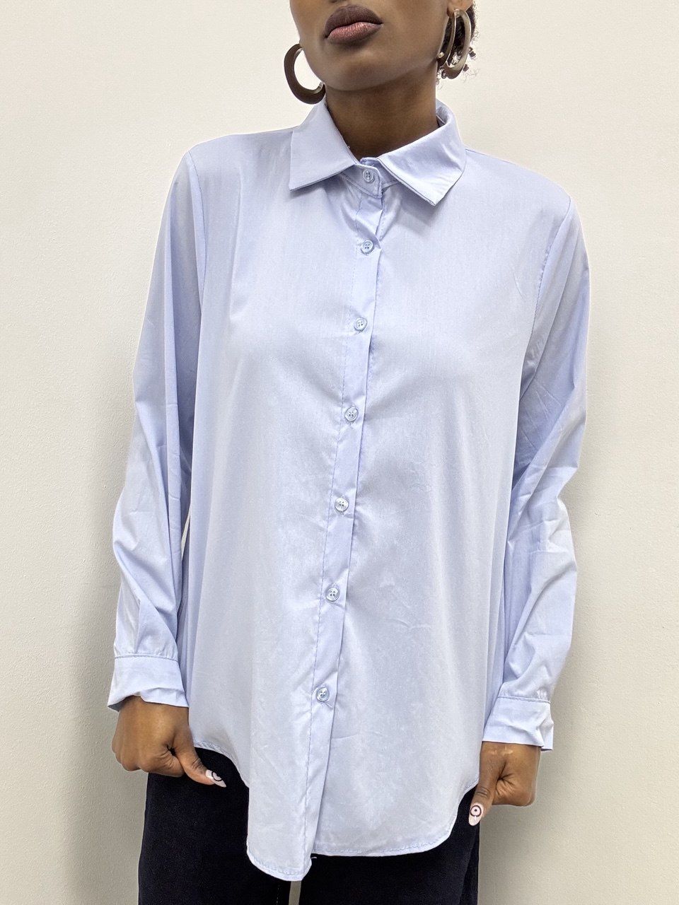 Camicia basica dal design essenziale, caratterizzata da colletto e polsini strutturati che donano ordine e definizione al capo. La chiusura frontale con bottoni completa il modello con un dettaglio classico e funzionale. Versatile e facile da abbinare, è ideale per look quotidiani o più curati.