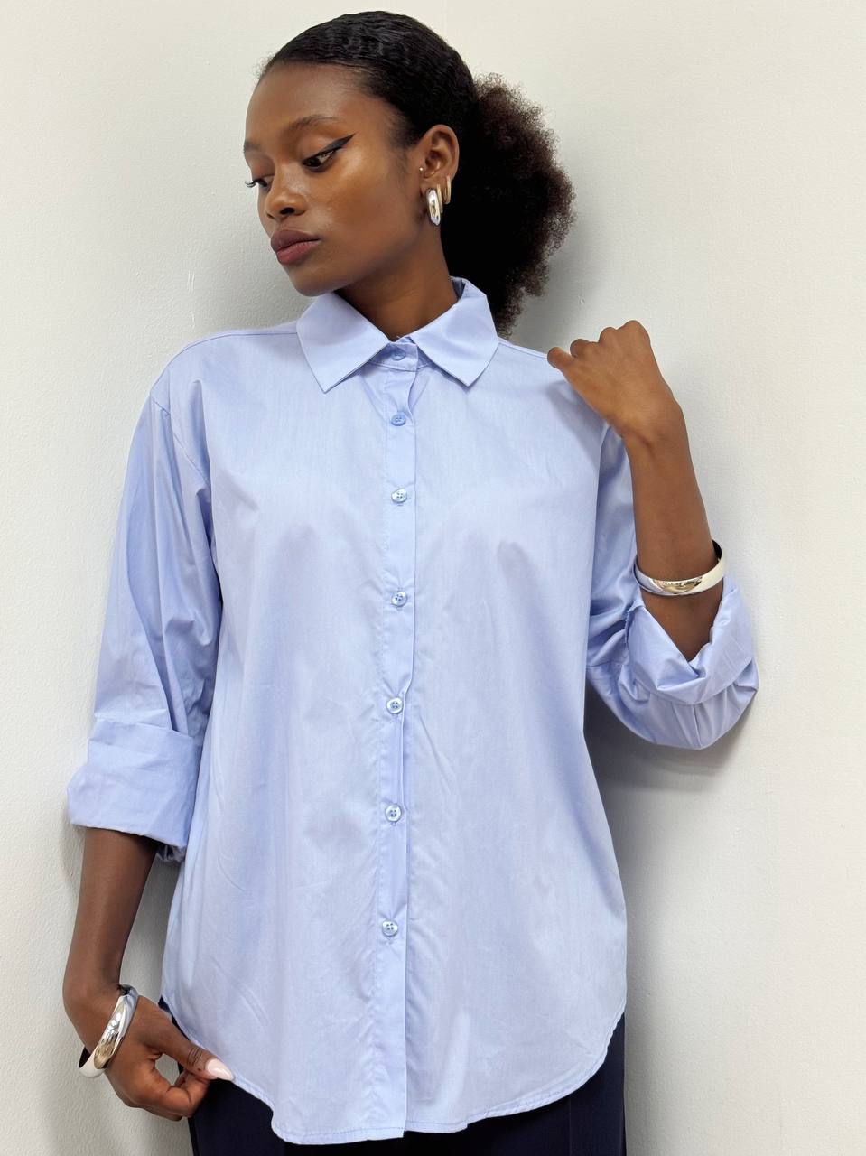 Camicia basica con colletto e polsini strutturato. Bottoni anteriori di chiusura