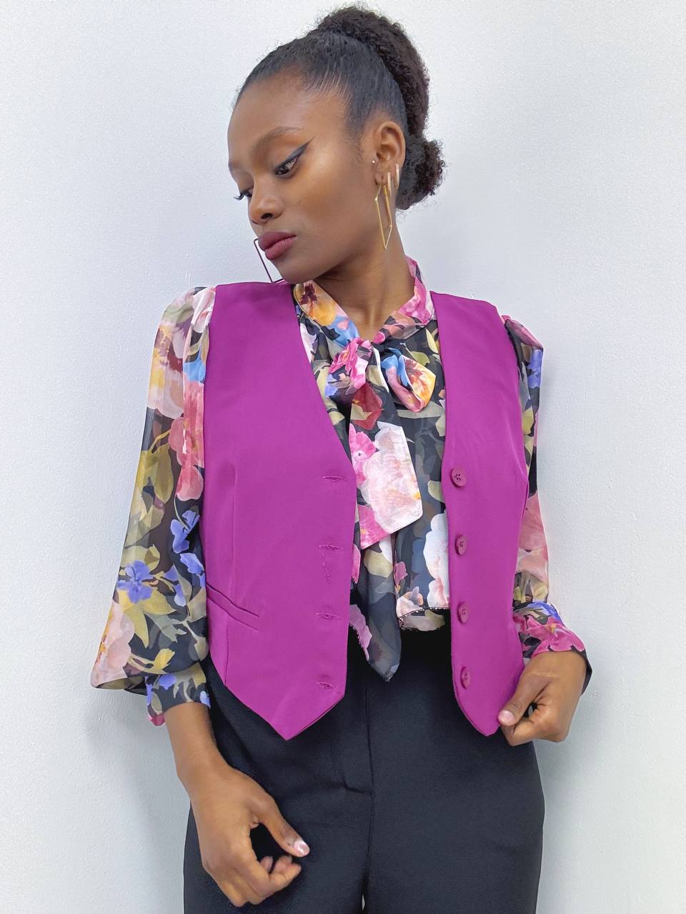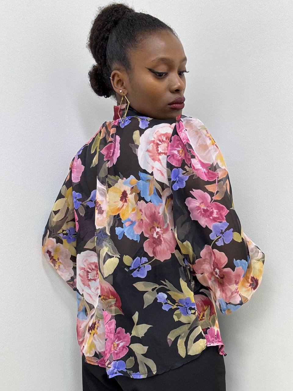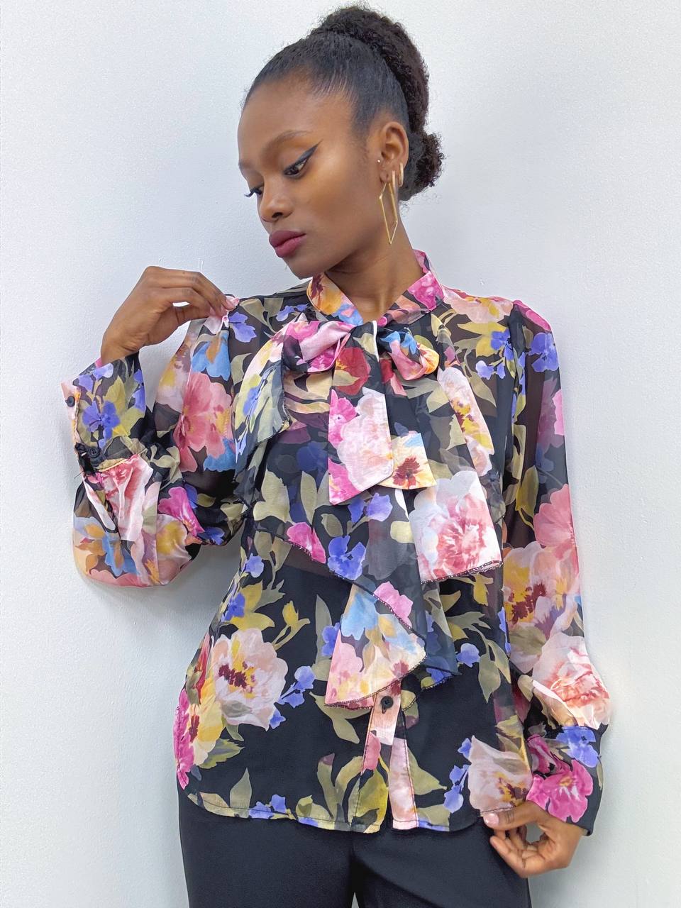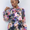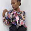 Camicia con dettaglio di fiocco sulla parte centrale con stampa fiorata su tutta la lunghezza.