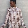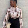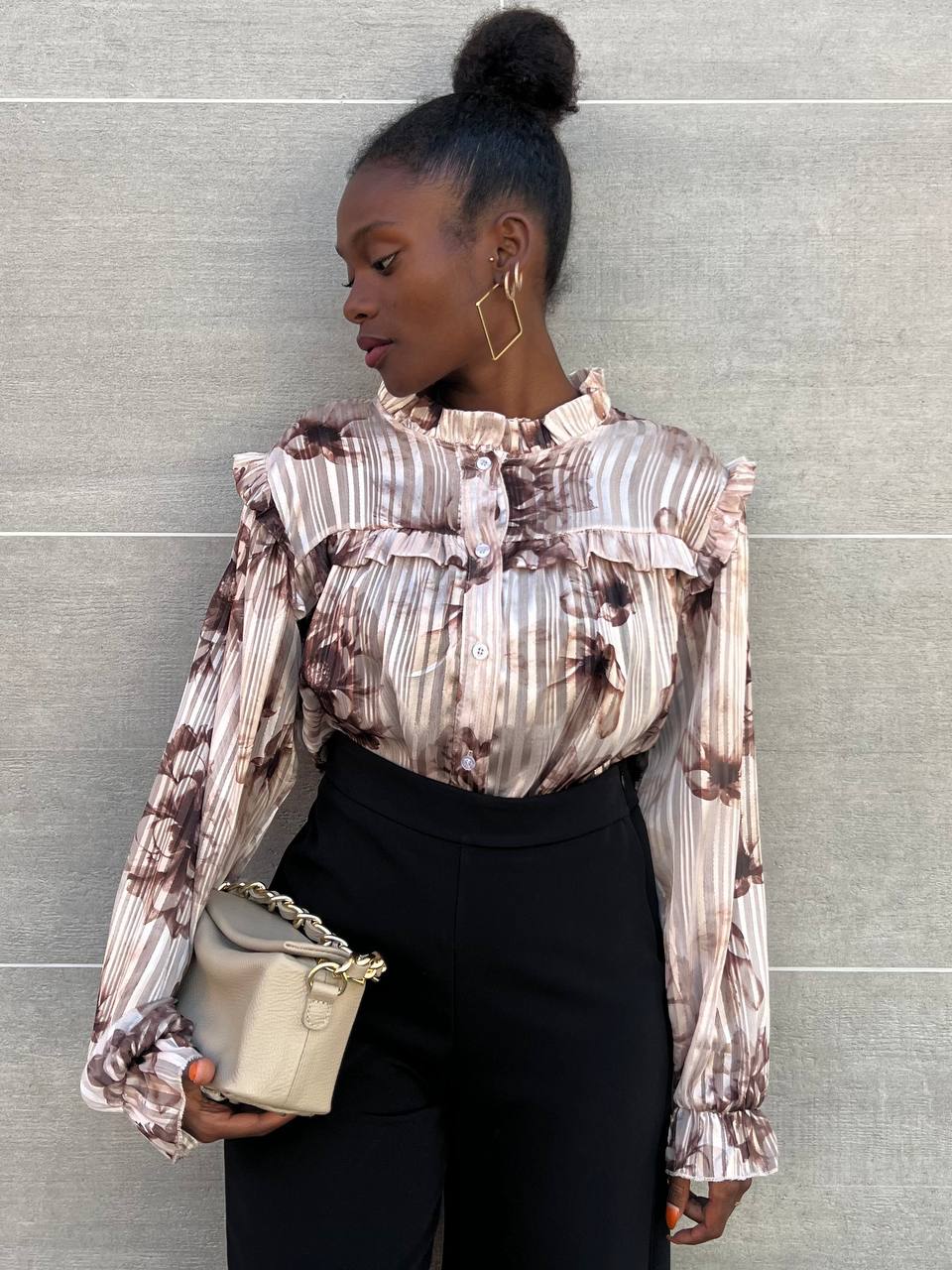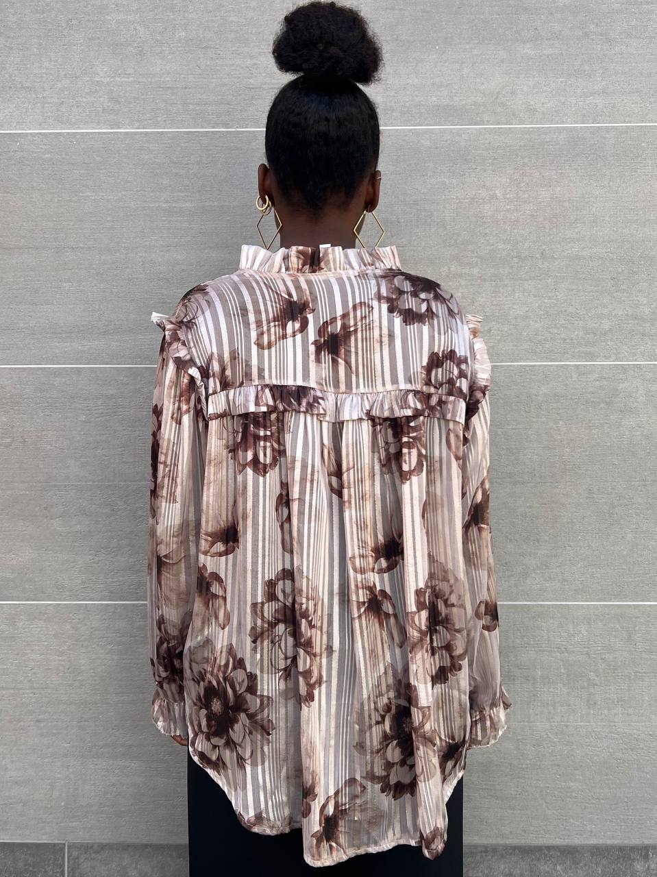 Camicia con collo alla coreana con stampa su tutta la lunghezza con polsino elasticizzato.
