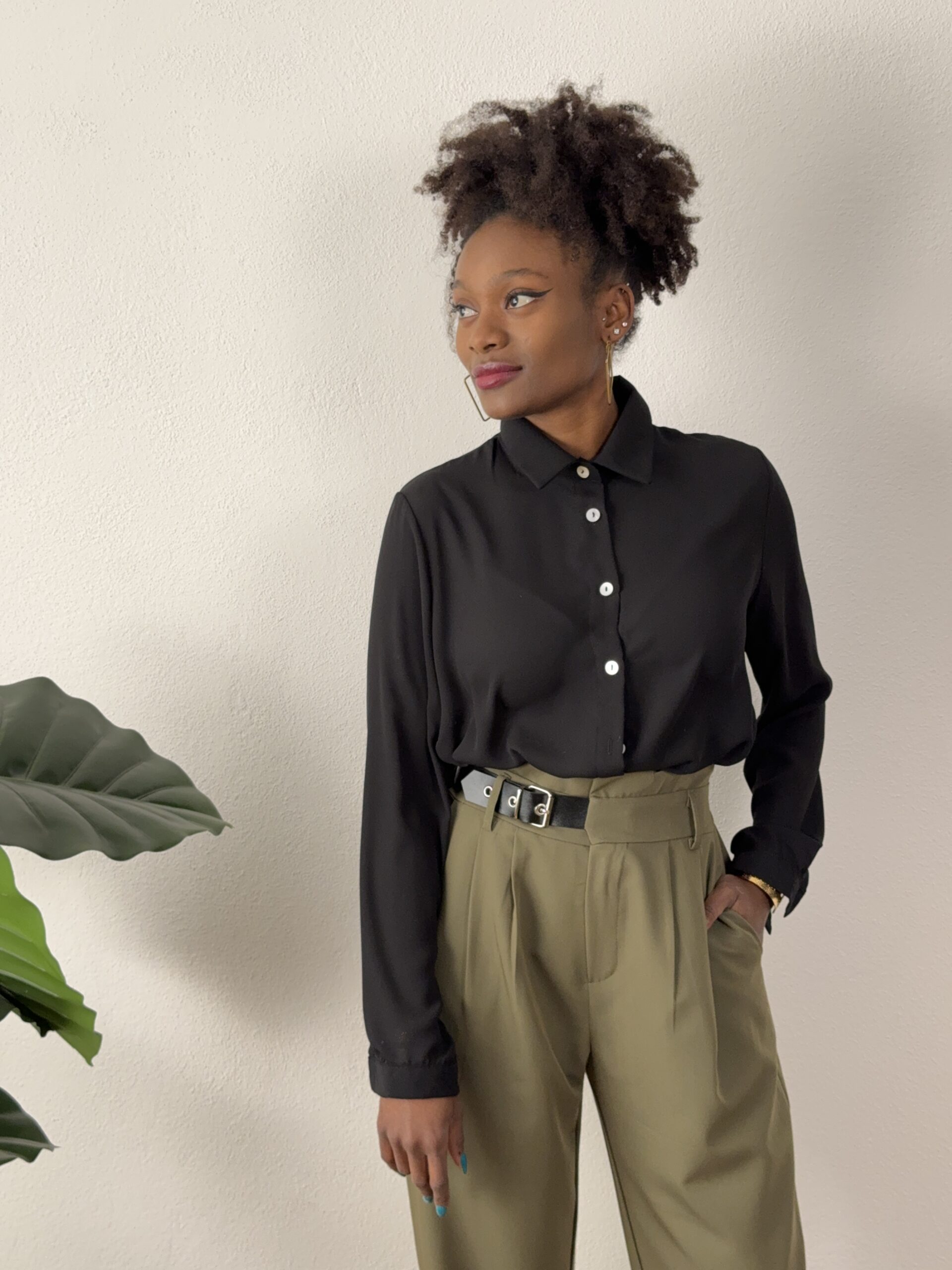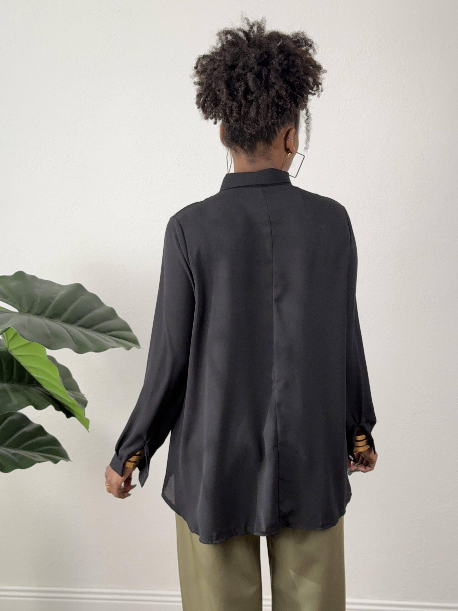 Camicia Basic over a tinta unita. Leggermente più corta davanti e lunga dietro.