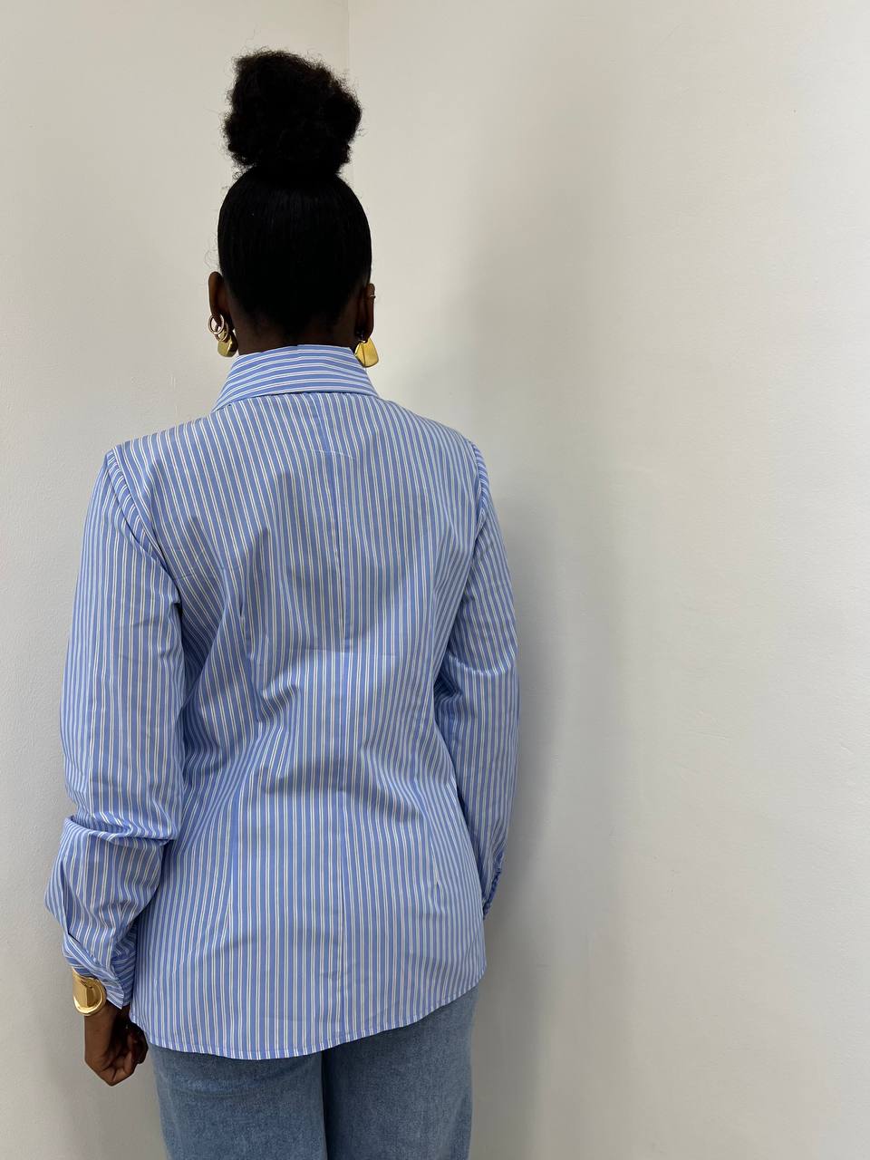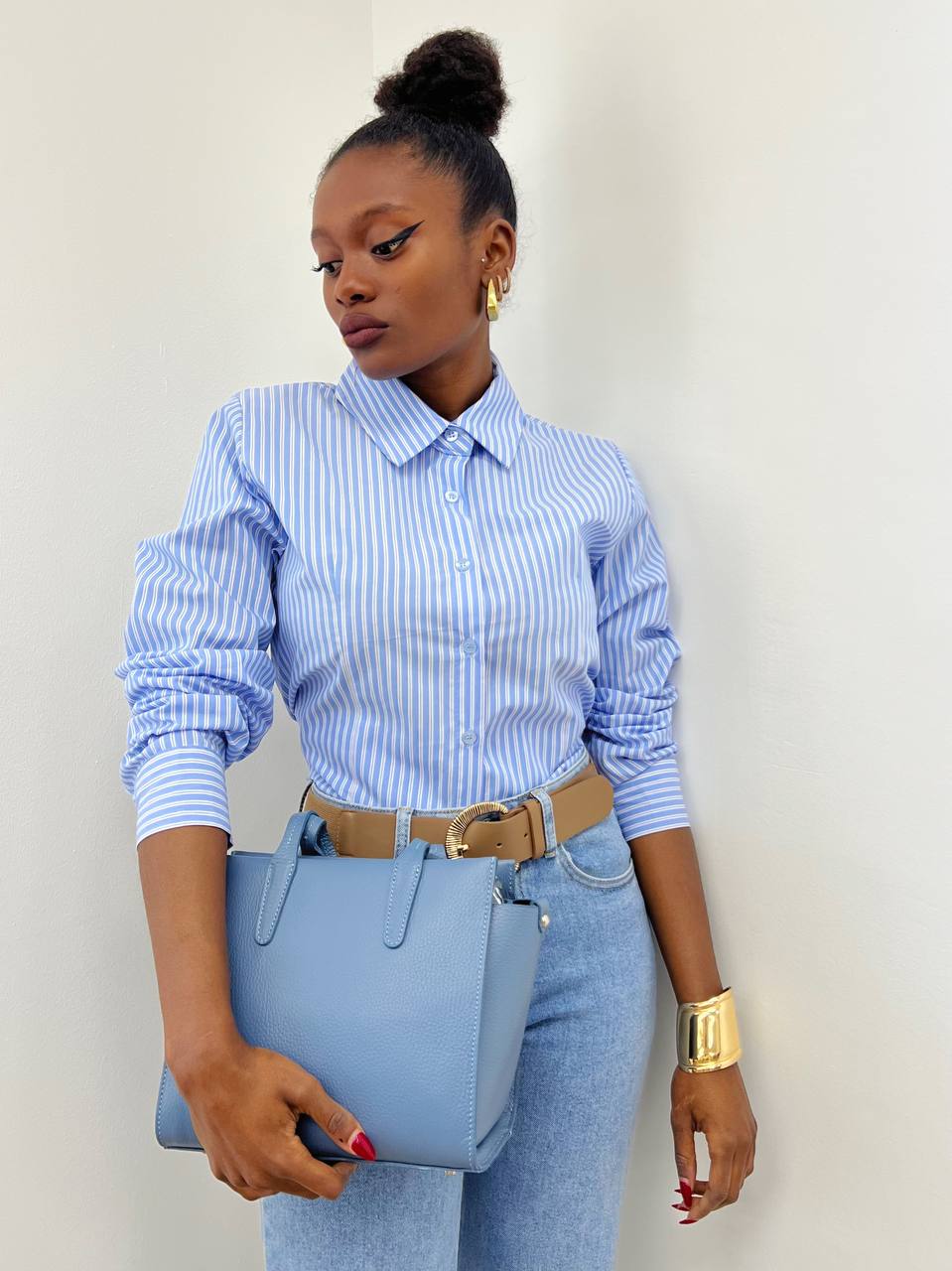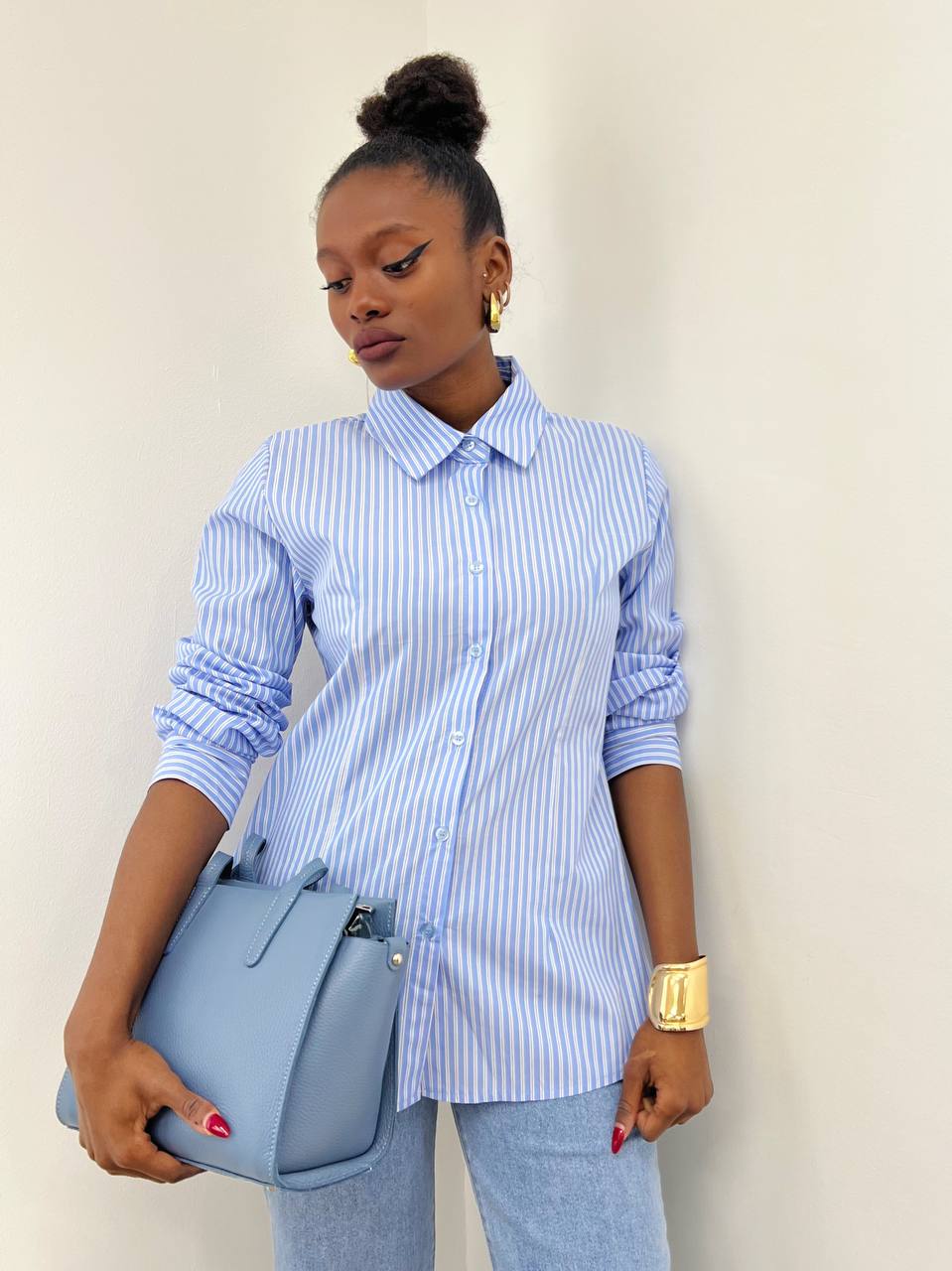 CAMICIA BASTONETTO IN POPELINE IN COTONE AZZURRA