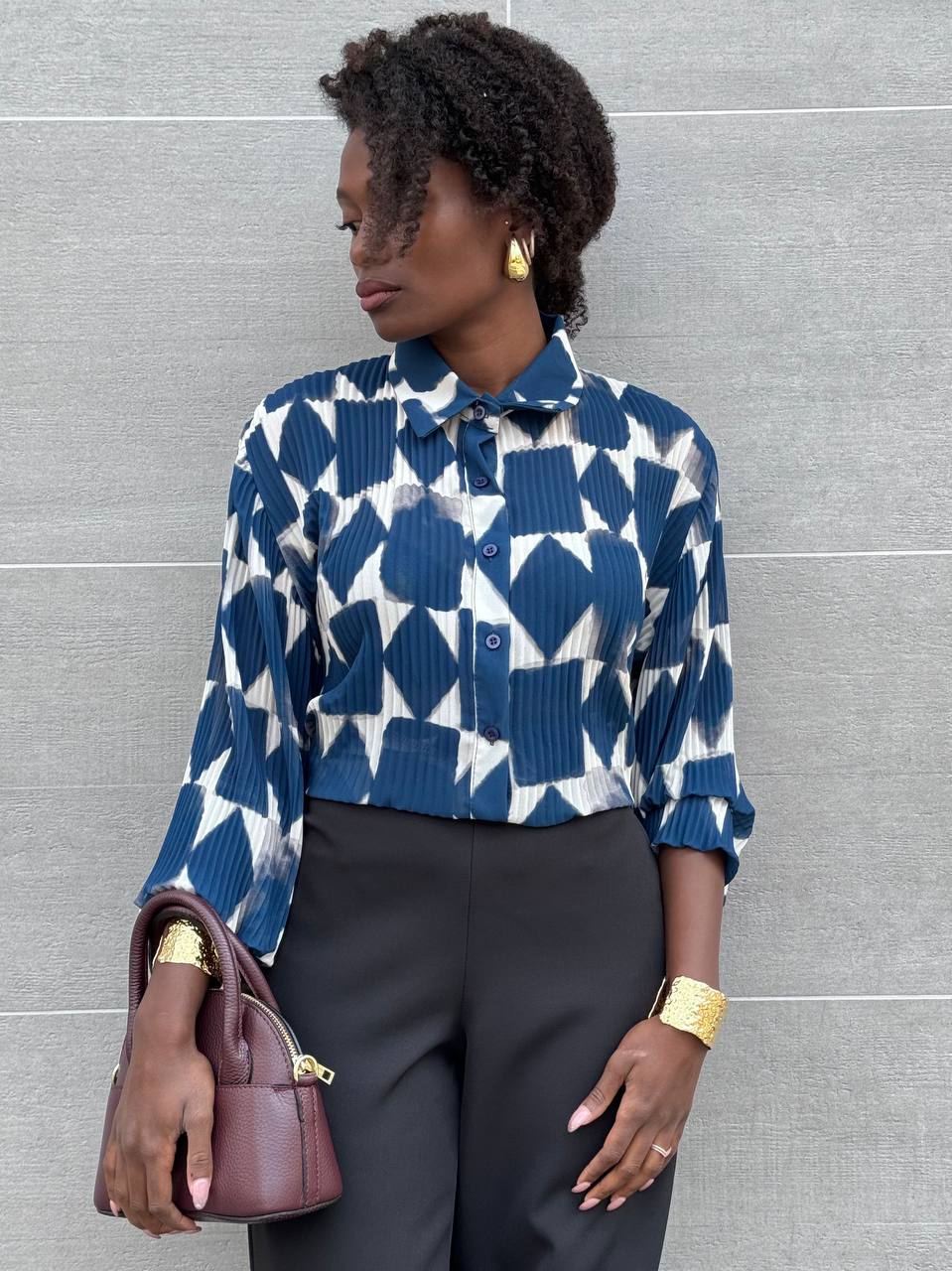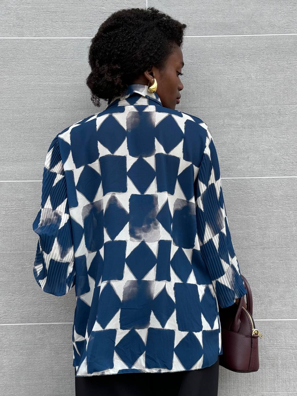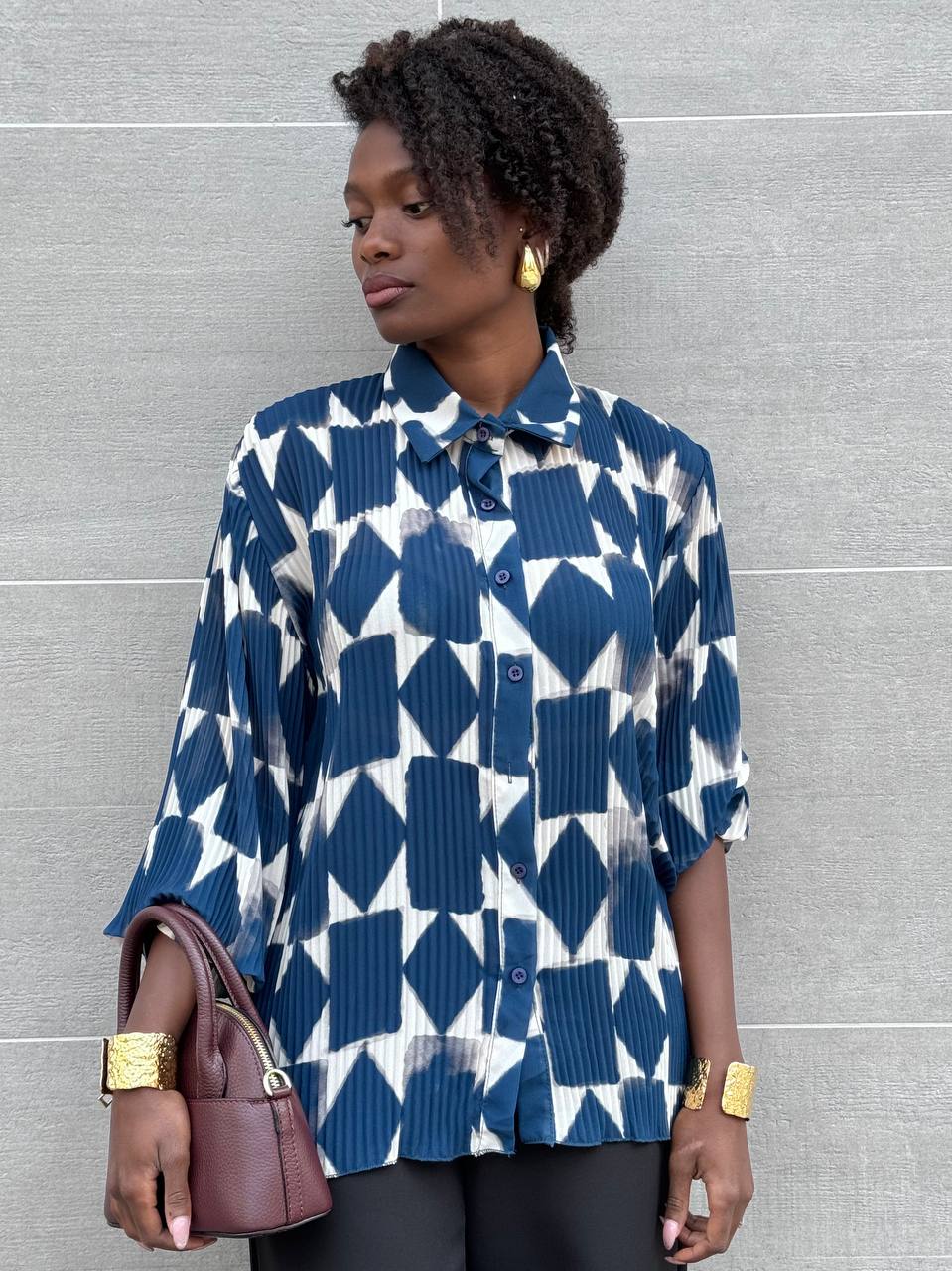 Camicia con chiusura di bottoni frontali su tutta la lunghezza con stampa.