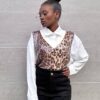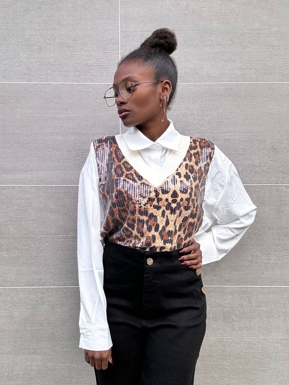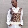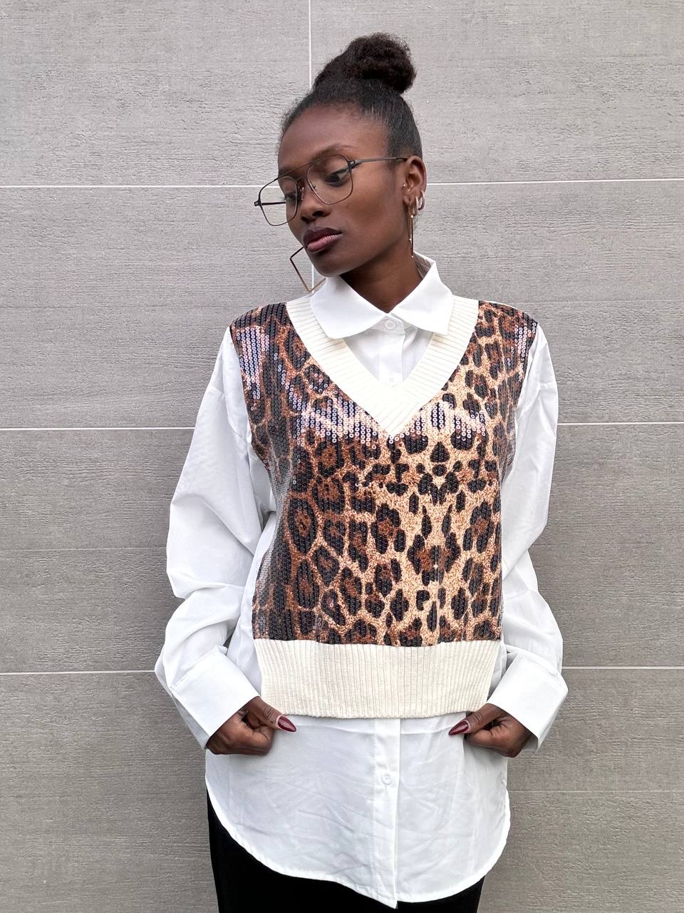 Camicia con stampa leopardata brillantinata sulla parte centrale.