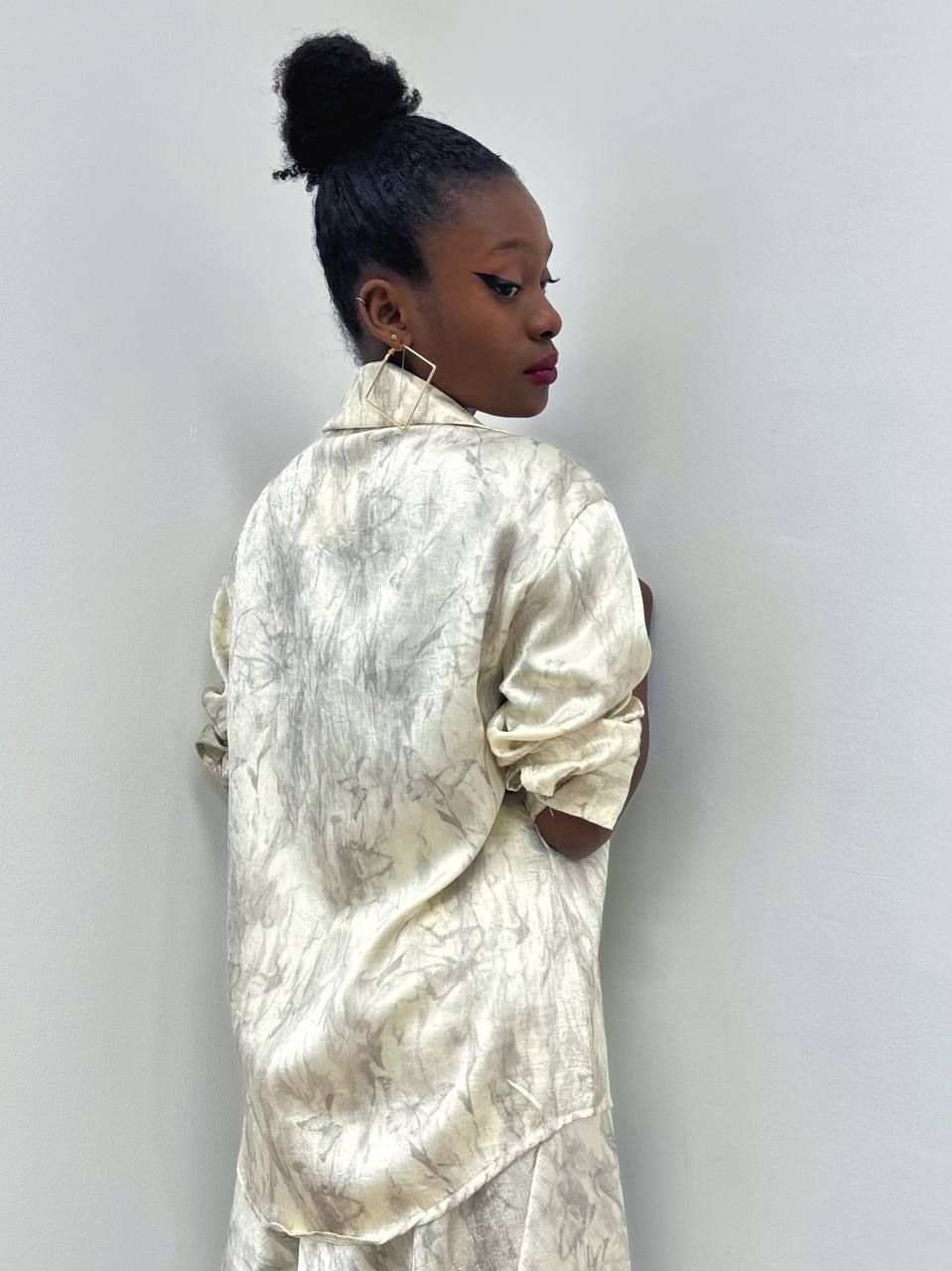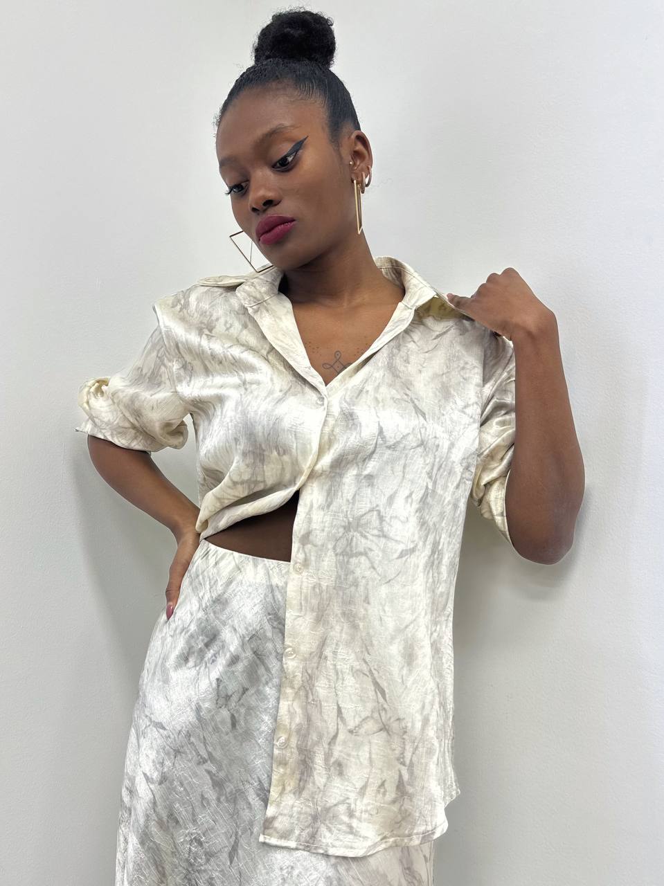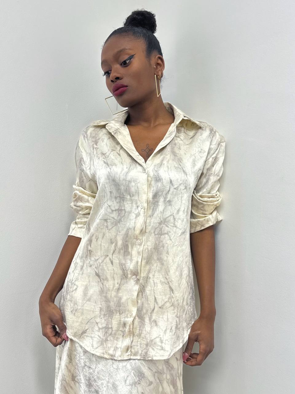 Camicia ad effetto spalmato con dettaglio di bottoni di chiusura tono su tono.