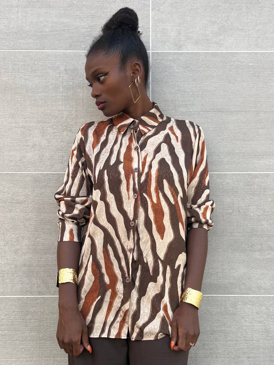 Camicia con stampa con dettaglio di bottoni di chiusura tono su tono.