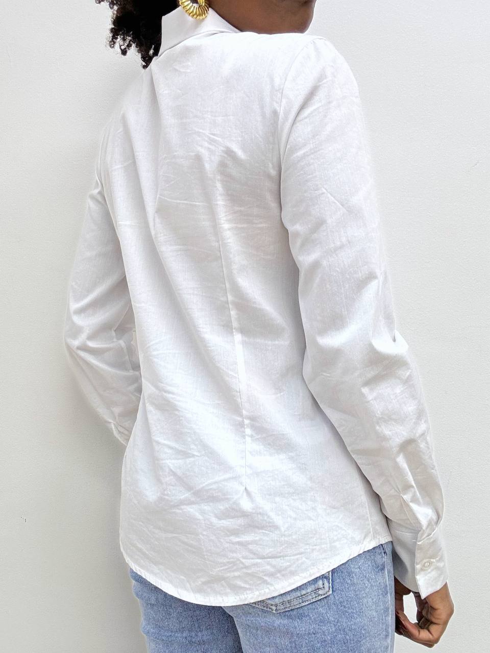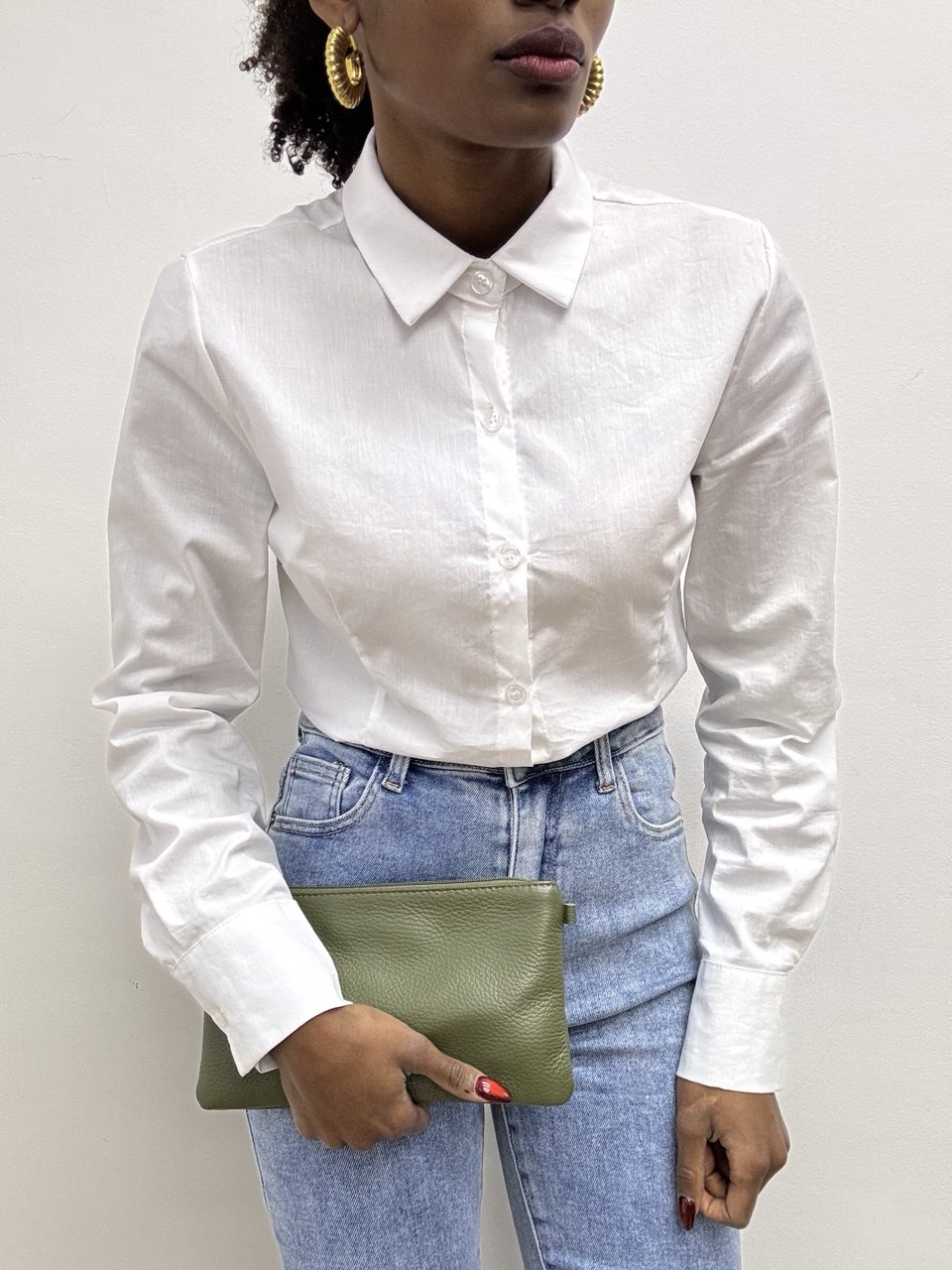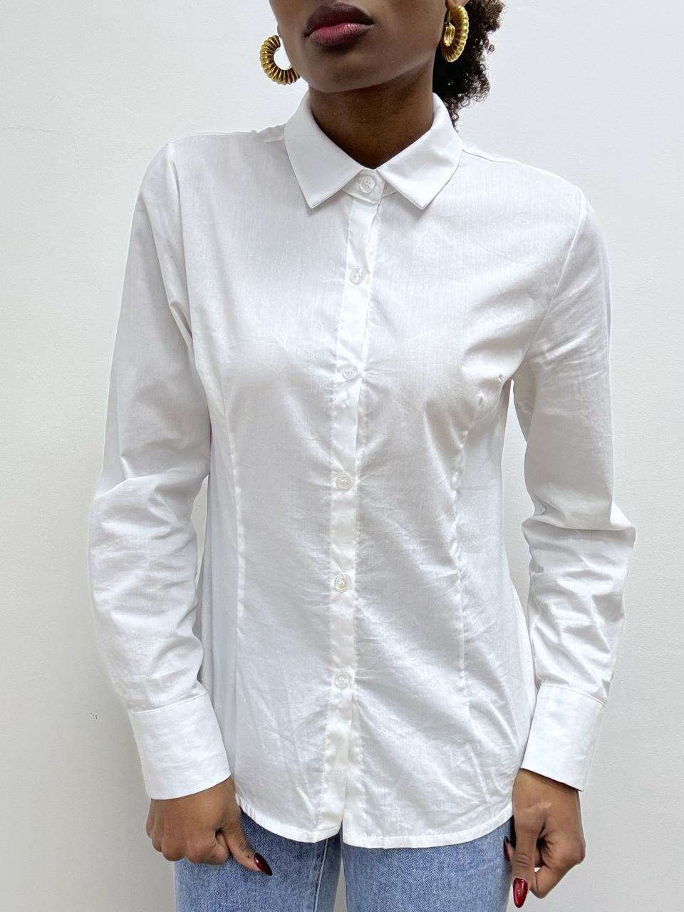 Camicia basica a manica lunga dal design essenziale e intramontabile. Il colletto classico dona un tocco formale e versatile, mentre i polsini strutturati valorizzano la linea della manica, assicurando una vestibilità curata. La chiusura con bottoni anteriori su tutta la lunghezza completa il capo con praticità e stile. Perfetta da indossare sia in contesti business che in abbinamenti più casual chic.