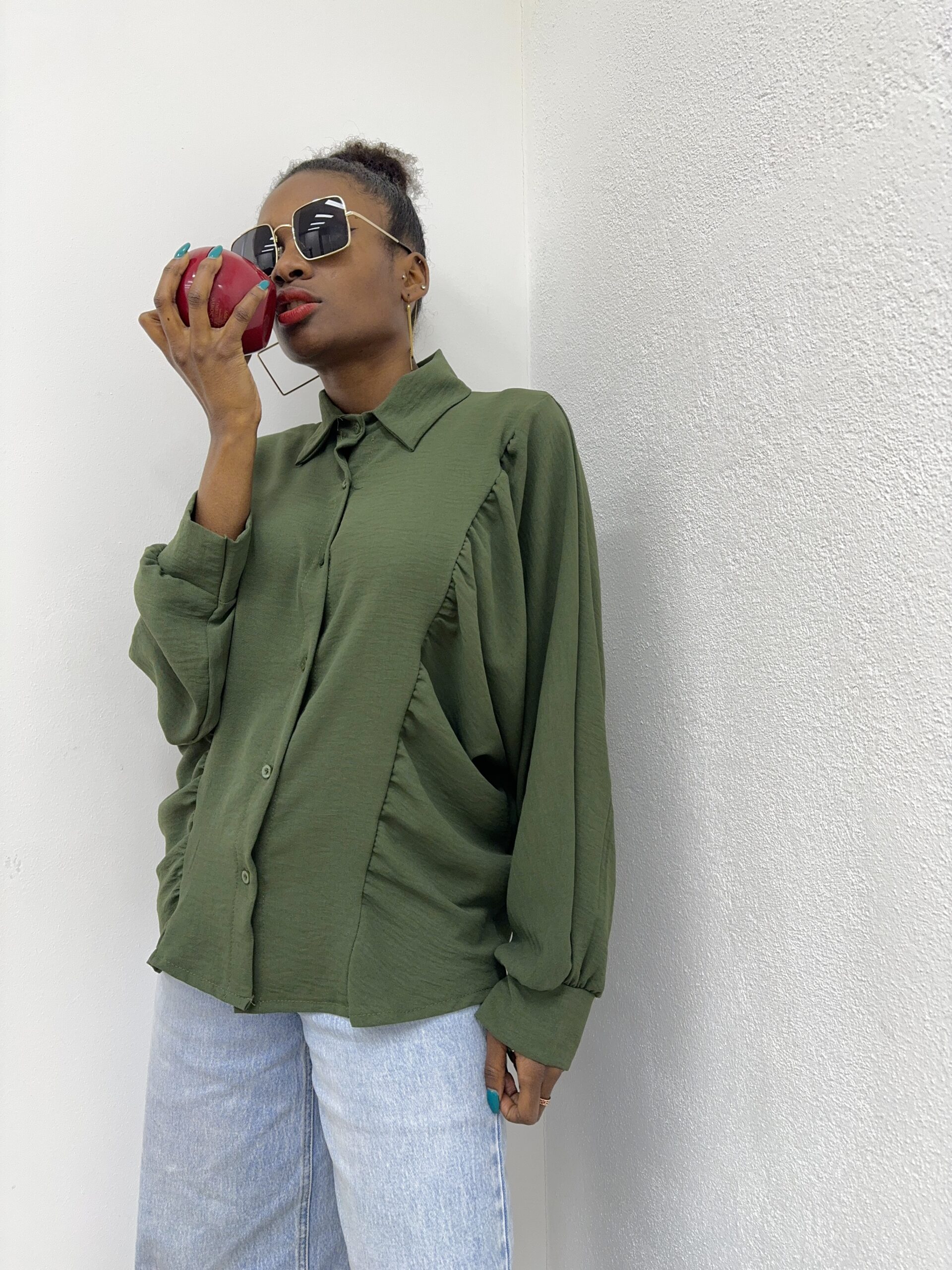 CAMICIA IN TESSUTO INCRESPATO VERDE MILITARE