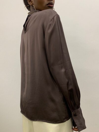 A completare il dettaglio, una delicata chiusura con piccolo bottone tono su tono, discreto ma distintivo. Perfetta da indossare da sola o come base per look stratificati, questa camicia è un capo versatile, ideale per uno stile minimal ma curato.