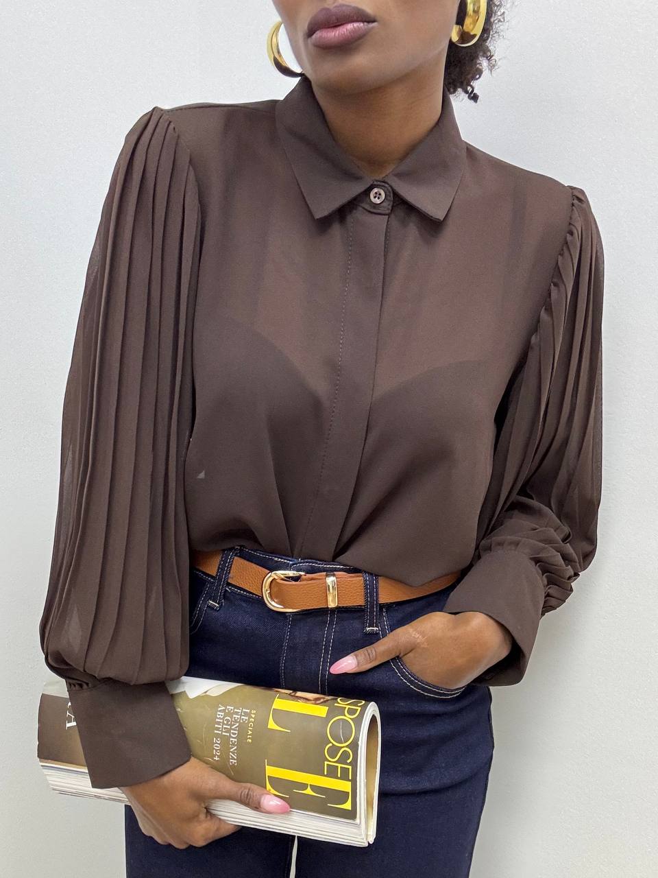 Camicia elegante a tinta unita, realizzata in tessuto leggero e confortevole. Il design è valorizzato dalle maniche plissettate, che aggiungono un tocco di stile e raffinatezza al capo. Il taglio moderno la rende perfetta sia per look casual chic che per outfit più formali. Facile da abbinare, ideale per ogni occasione.