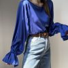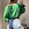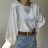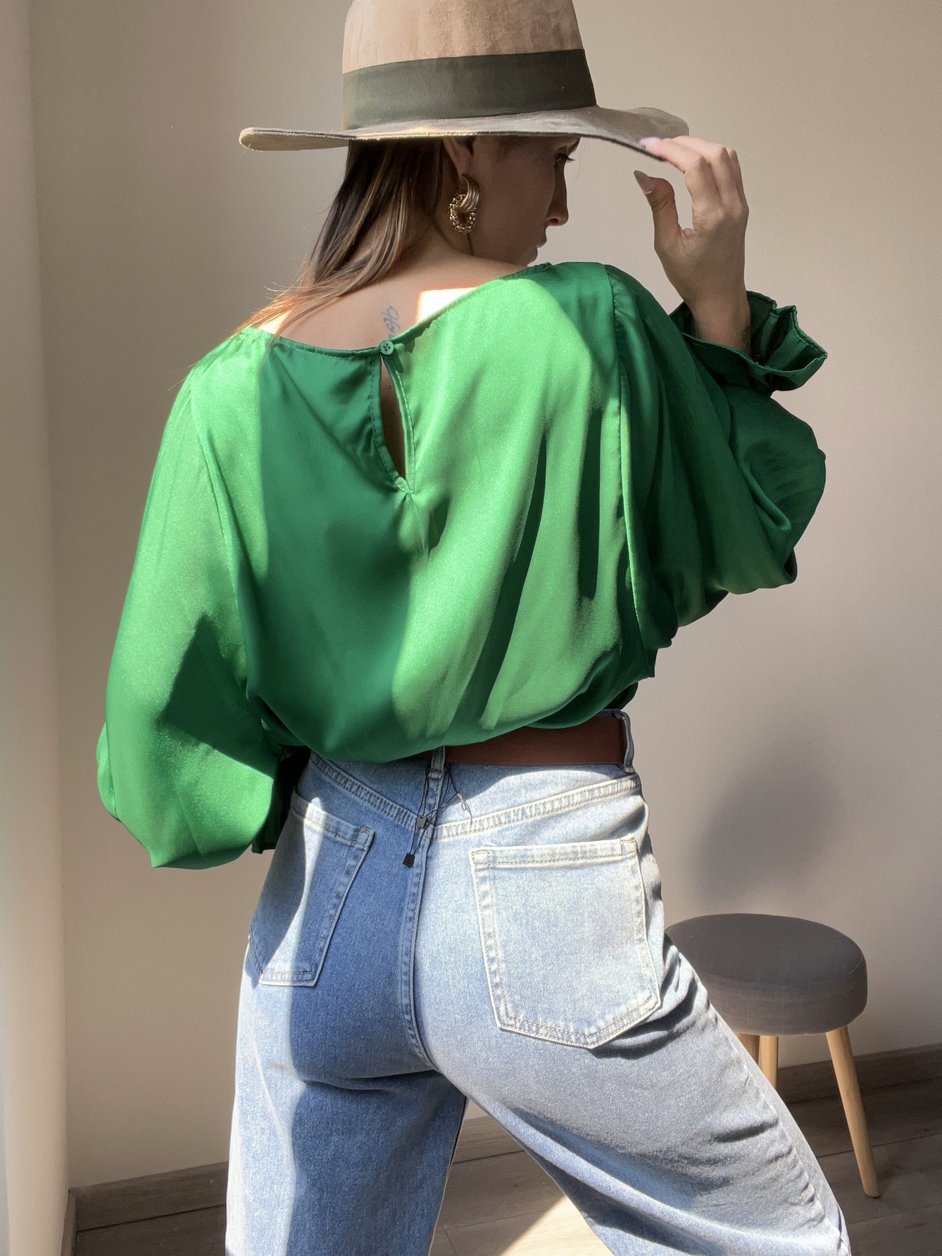 Dietro  scollo a V con chiusura di un bottone tono su tono.