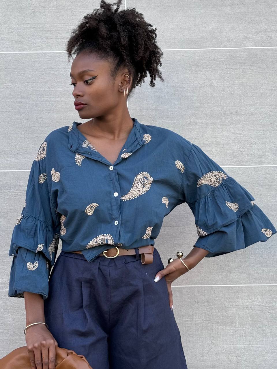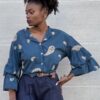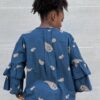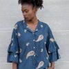 Camicia con collo alla coreana con stampa e dettaglio di maniche a tre quarti  con volant.